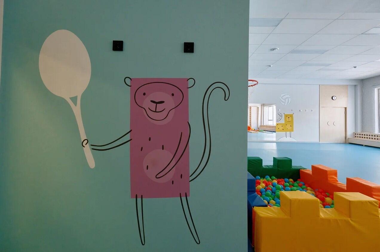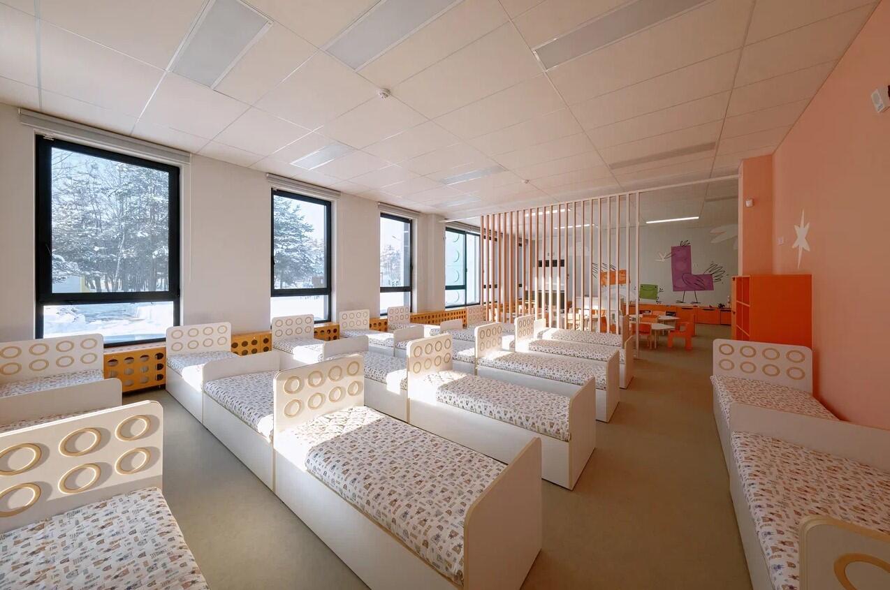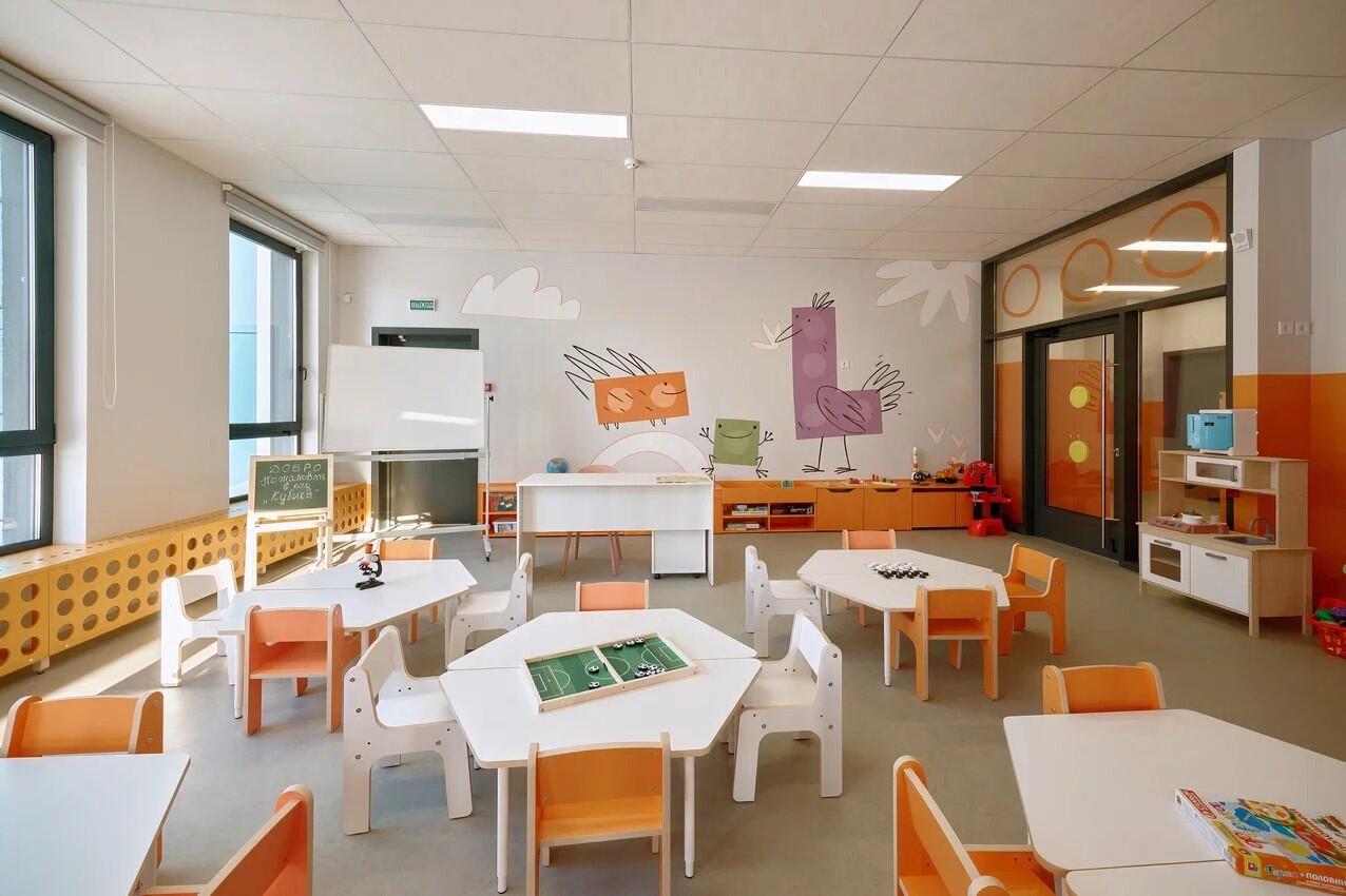 Помимо 12 групп, рассчитанных на 240 детей, в детском саду есть медицинский блок с изолированными комнатами для приболевших малышей и отдельным входом, кабинет учителя-дефектолога. Есть пищеблок со специальным подъемником на 2-й и 3-й этаж и лифт. Также для безопасности детей по периметру здания установлена система видеонаблюдения. Кроме этого, в детском саду в полной мере реализована безбарьерная среда.