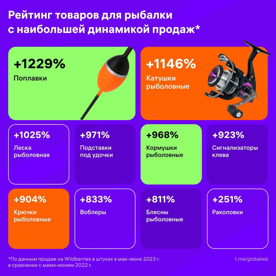 Буст продаж наблюдался и для лески (+1025%), подставок под удочки (+971%), рыболовных кормушек (+968%), сигнализаторов клева (+923%), крючков (+904%), воблеров (+833%), блесен (+811%) и раколовок (+251%).