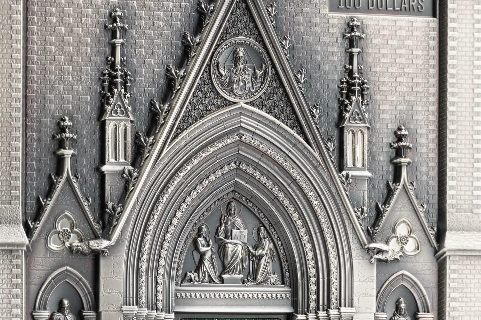 Килограммовые монеты выполнены из серебра с использованием цветной вставки из стекла.