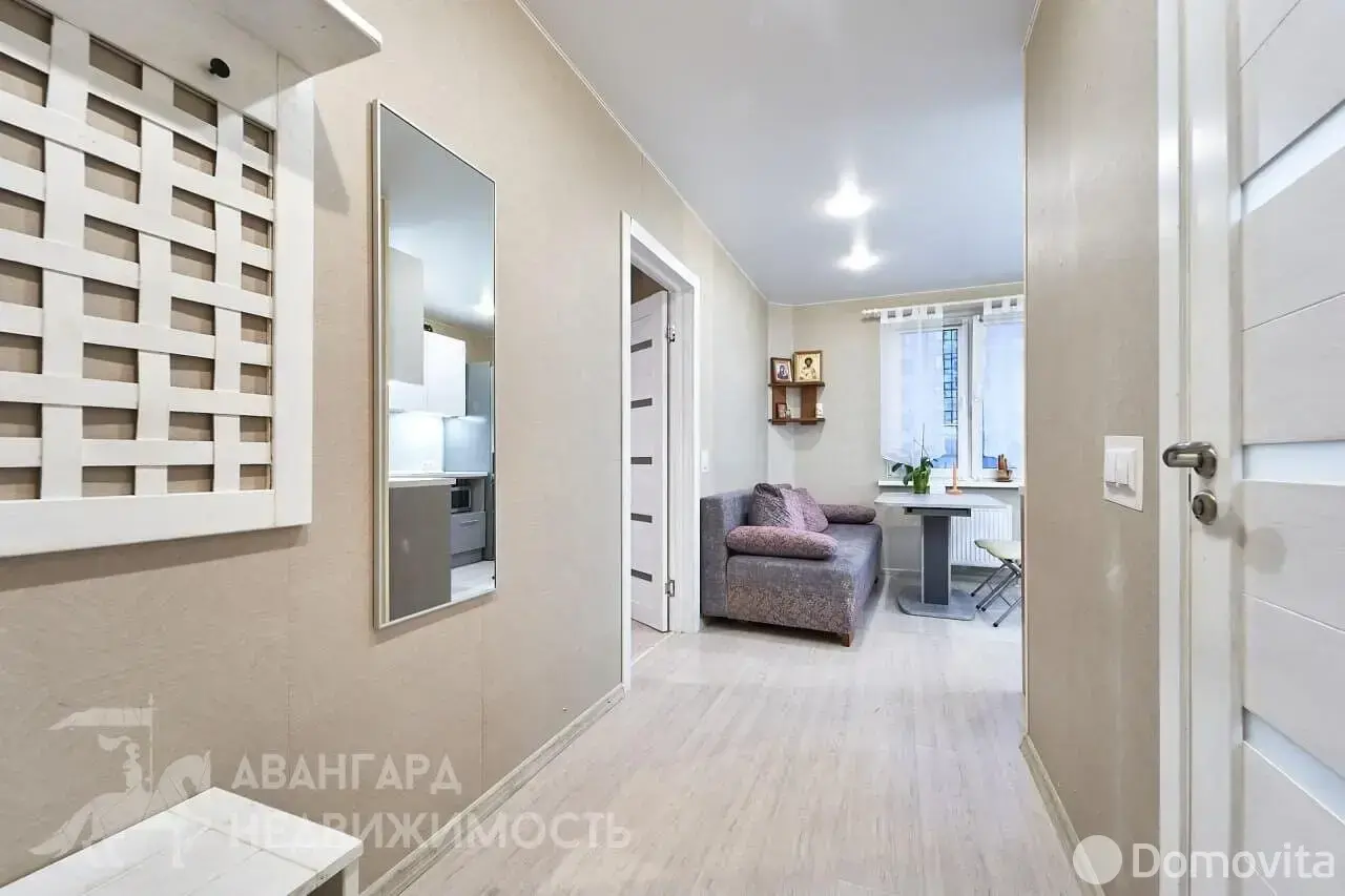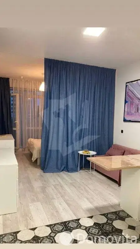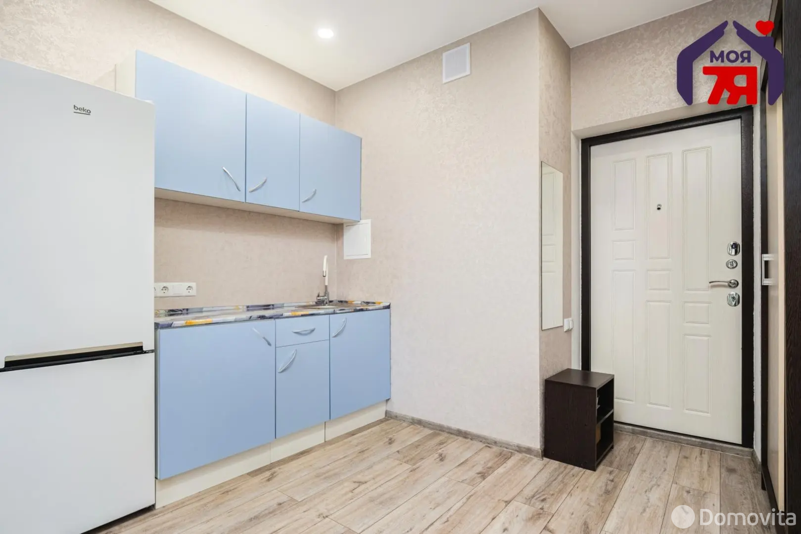 И еще один вариант в ЖК «Минск Мир». Здесь продается светлая студия с современным ремонтом (без мебели и кухонного гарнитура). Расположена она на 6 этаже в доме, построенном в 2023 году. Правда, площадь жилья совсем небольшая — 26,3 кв. м. Если не нуждаетесь в просторной квартире, тогда можно присмотреться к этому варианту.