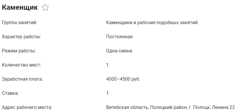 Общество с ограниченной ответственностью «ТОССАТ» ищет каменщика на зарплату в 4000–4500 руб. для работы в Полоцке.
