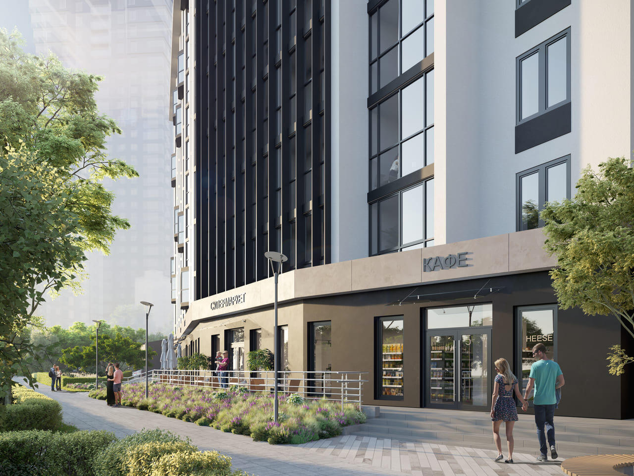 - Коммерческие помещения на первом этаже (площади от 50 до 300 м²).
