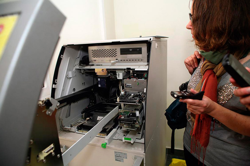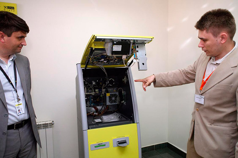 Банкоматы и инфокиоски работают по принятой в мире схеме: внутри каждого аппарата находится компьютер, который обрабатывает запросы, шифрует данные с помощью модуля безопасности и передает через 3G-модем в процессинговый центр.