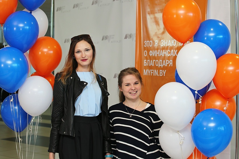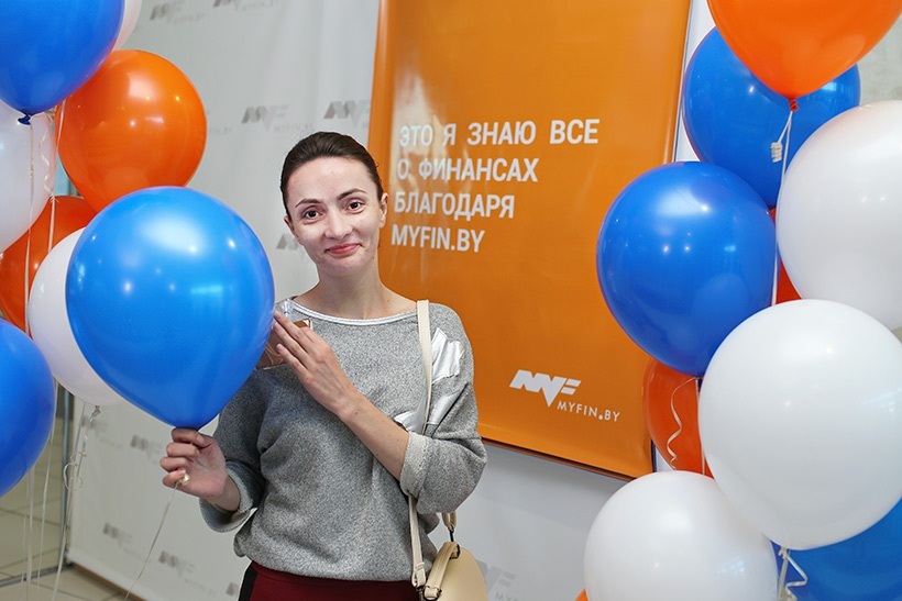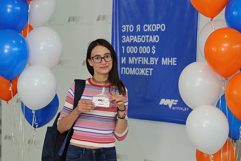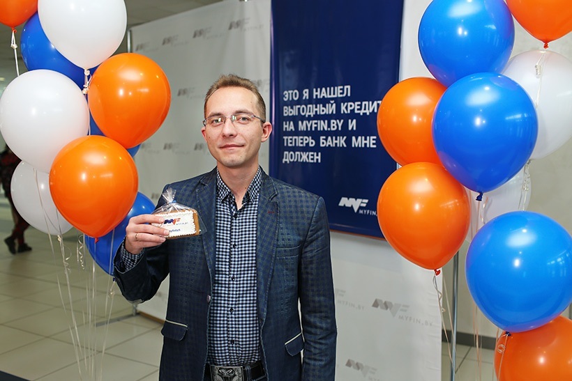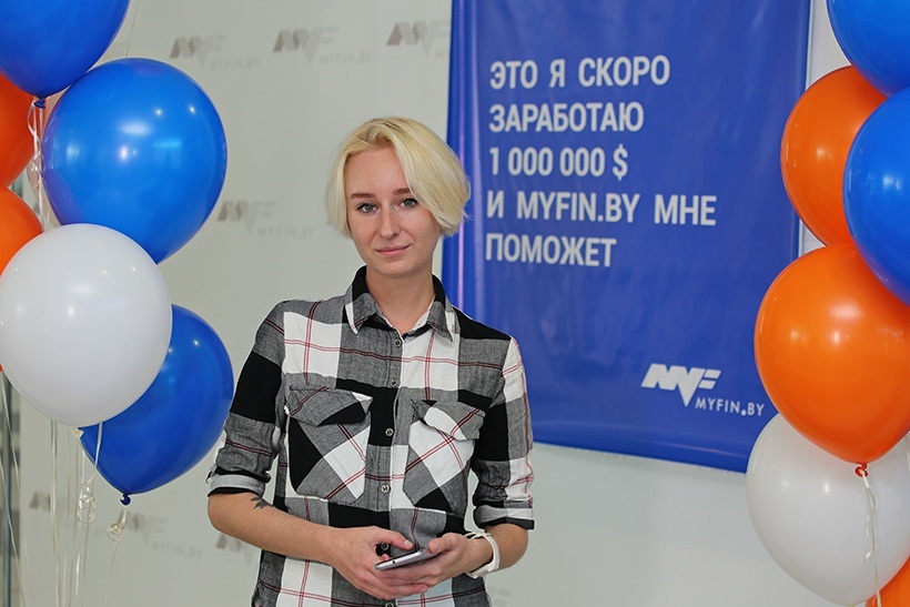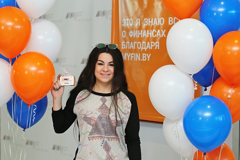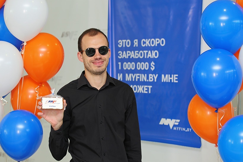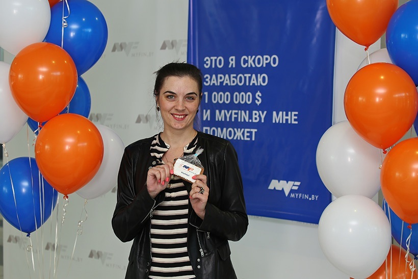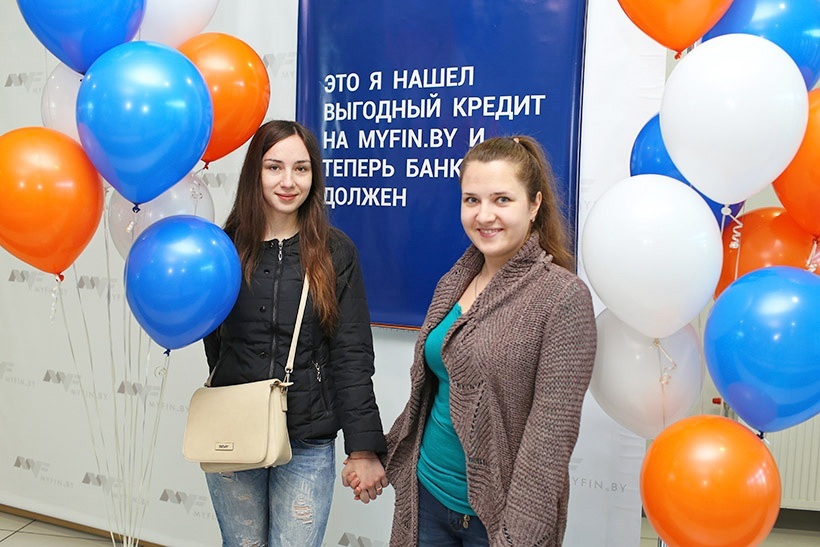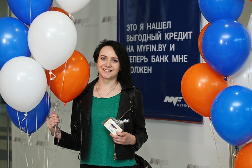 Получив их, работники и посетители бизнес-центра также с удовольствием фотографировались на фоне плакатов с надписями «Это я нашел выгодный кредит на Myfin.by и теперь банк мне должен», «Это я скоро заработаю миллион долларов и Myfin.by поможет» и так далее.