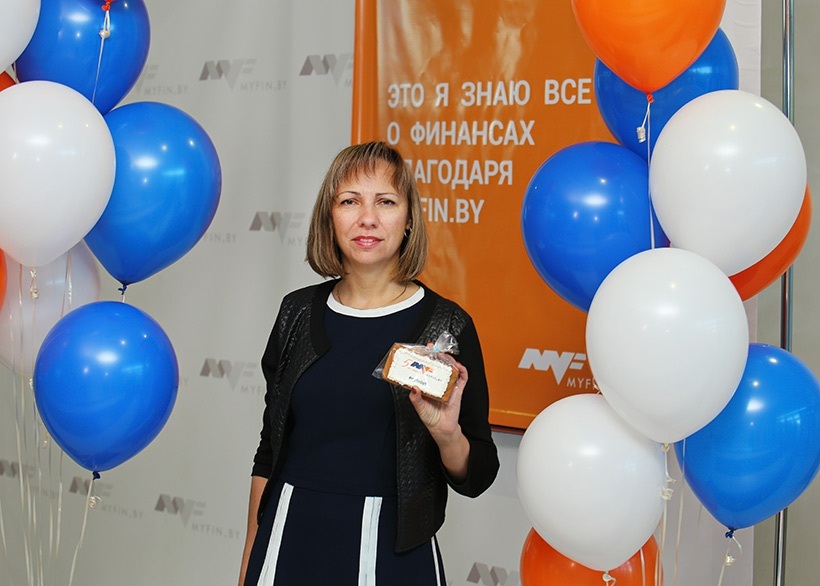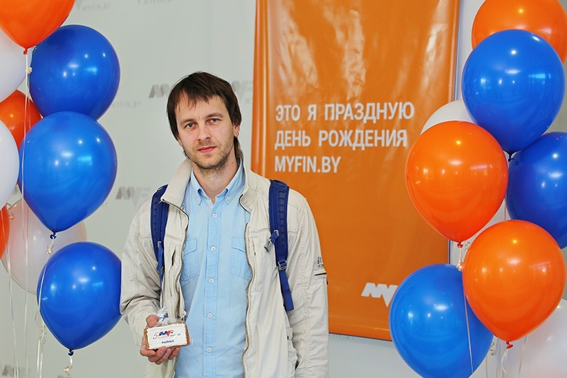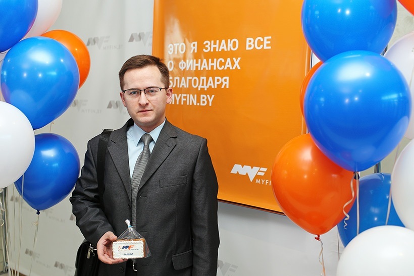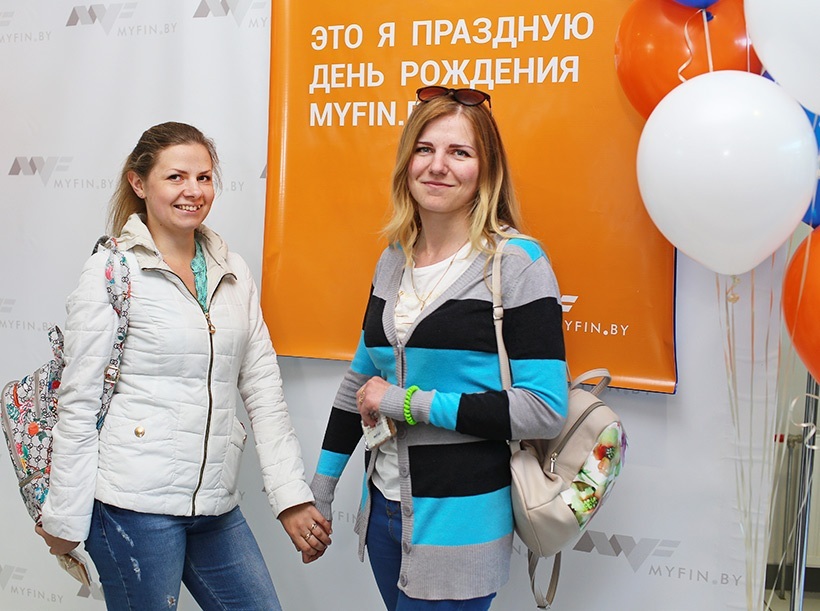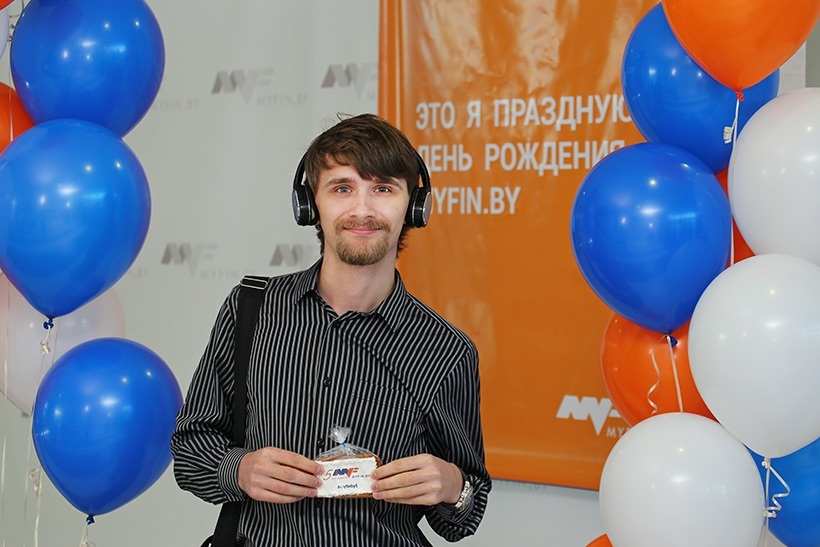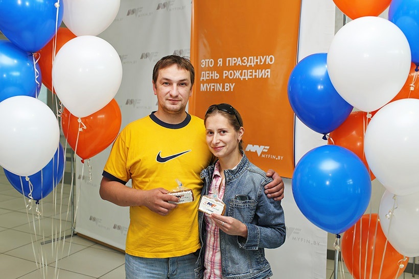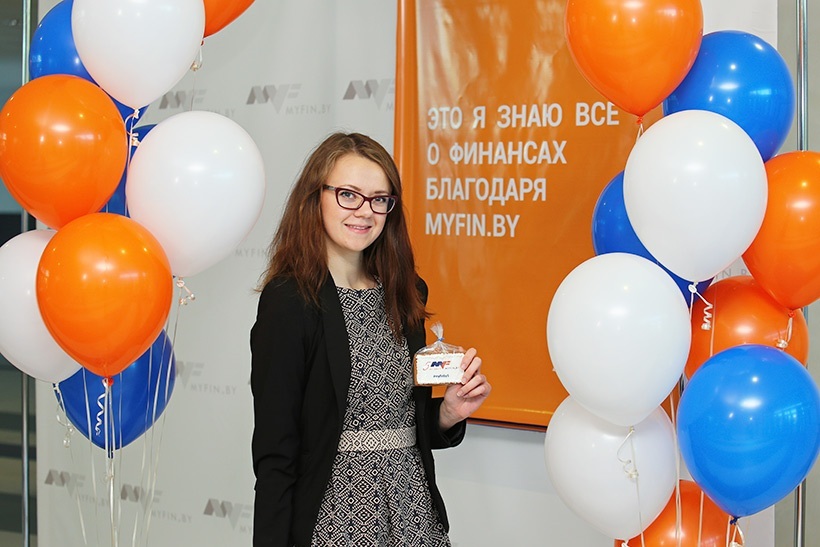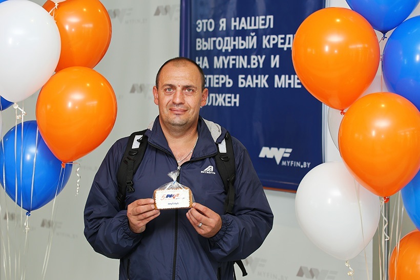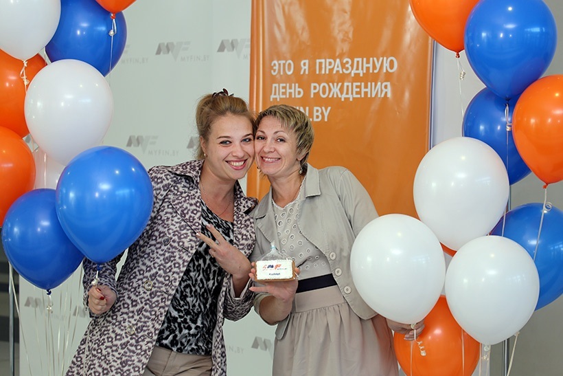 Получив их, работники и посетители бизнес-центра также с удовольствием фотографировались на фоне плакатов с надписями «Это я нашел выгодный кредит на Myfin.by и теперь банк мне должен», «Это я скоро заработаю миллион долларов и Myfin.by поможет» и так далее.