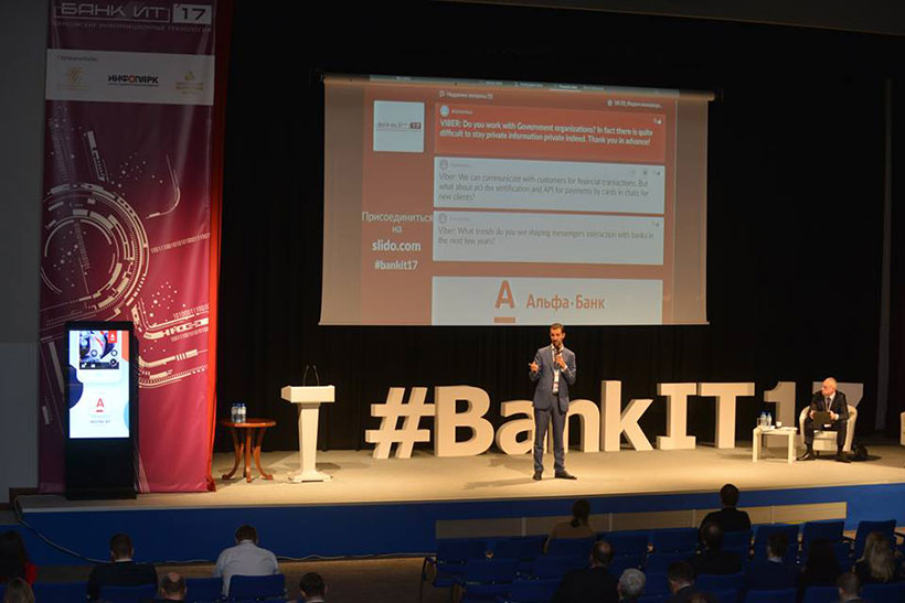 Пленарная сессия продолжилась форумом инноваций с участием компаний MasterCard, СофтКлуб, IBA Group, LWO, БелАВМ, а также EY и Viber. На форуме были представлены тренды в сфере цифровых технологий и прорывные продукты для финансовых организаций. В том числе речь шла об использовании искусственного интеллекта в банковской сфере и взаимодействии с клиентами через чат-боты.