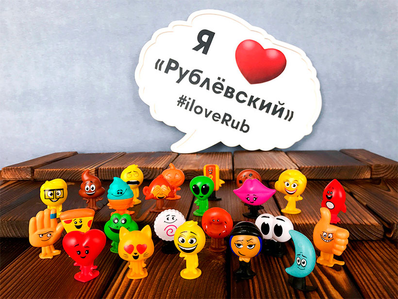 Торговая сеть «Рублёвский» продлила инициативу с раздачей бесплатных игрушек по 12 ноября. Фигурку выдают бесплатно за каждые 15 рублей в чеке и еще по одной – за товары-партнеры. Проект реализуется вместе с европейским партнером, который получил от Sony Pictures права на использование персонажей The Emoji Movie в Европе и странах СНГ. Игрушки изображают обитателей Текстополиса – вымышленного города, в котором обитают смайлики. Всего в коллекции 24 персонажа, а внутри каждой фигурки спрятана ручка с уникальным цветом.