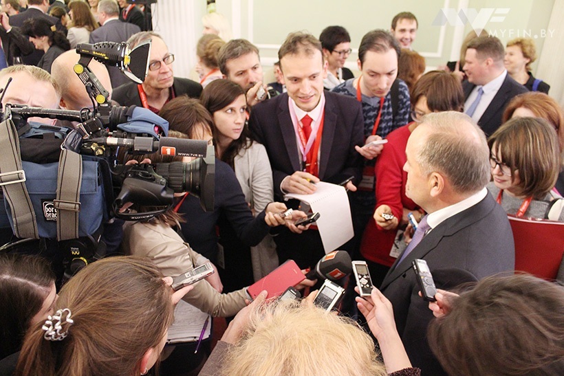 В конференции принимают участие первый вице-премьер Василий Матюшевский, глава представительства ЕС Андреа Викторин, региональный директор Всемирного банка Сату Кахконен, замдиректора департамента МВФ Атанасиос Арванитис и так далее.