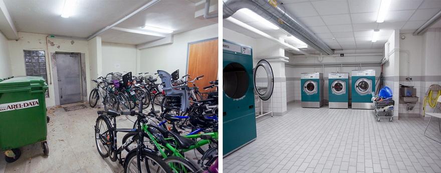 В домах много вспомогательных помещений: для колясок и велосипедов, для спорта и отдыха, кладовки, прачечные.