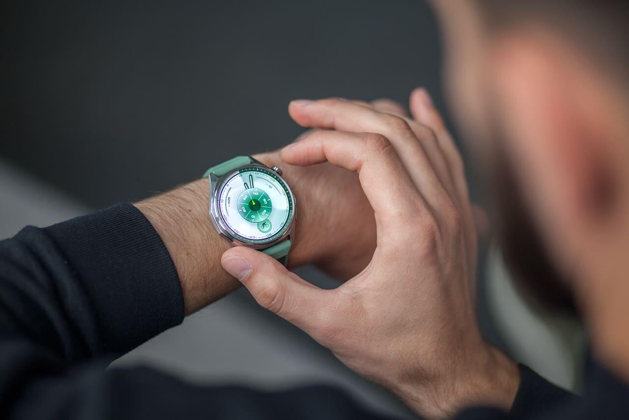 Базовая модель Huaware Watch GT 6 46 мм выполнена в корпусе из нержавеющей стали с зеленым, серым или черным ремешком.