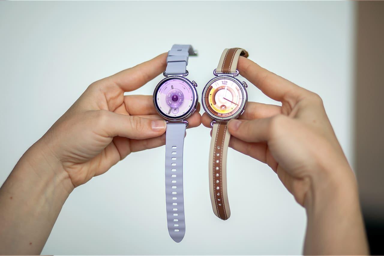 Версия 41 мм ориентирована на более разнообразную палитру: для нее предусмотрены ремешки коричневого, белого, золотого и сиреневого цветов.
