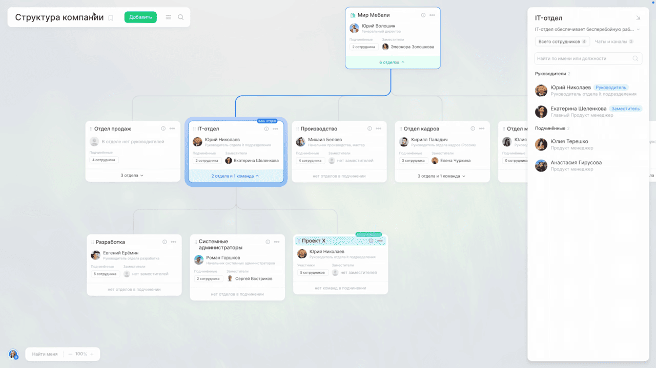 - Отразить проектную команду в Структуре компании, не создавая отдел.