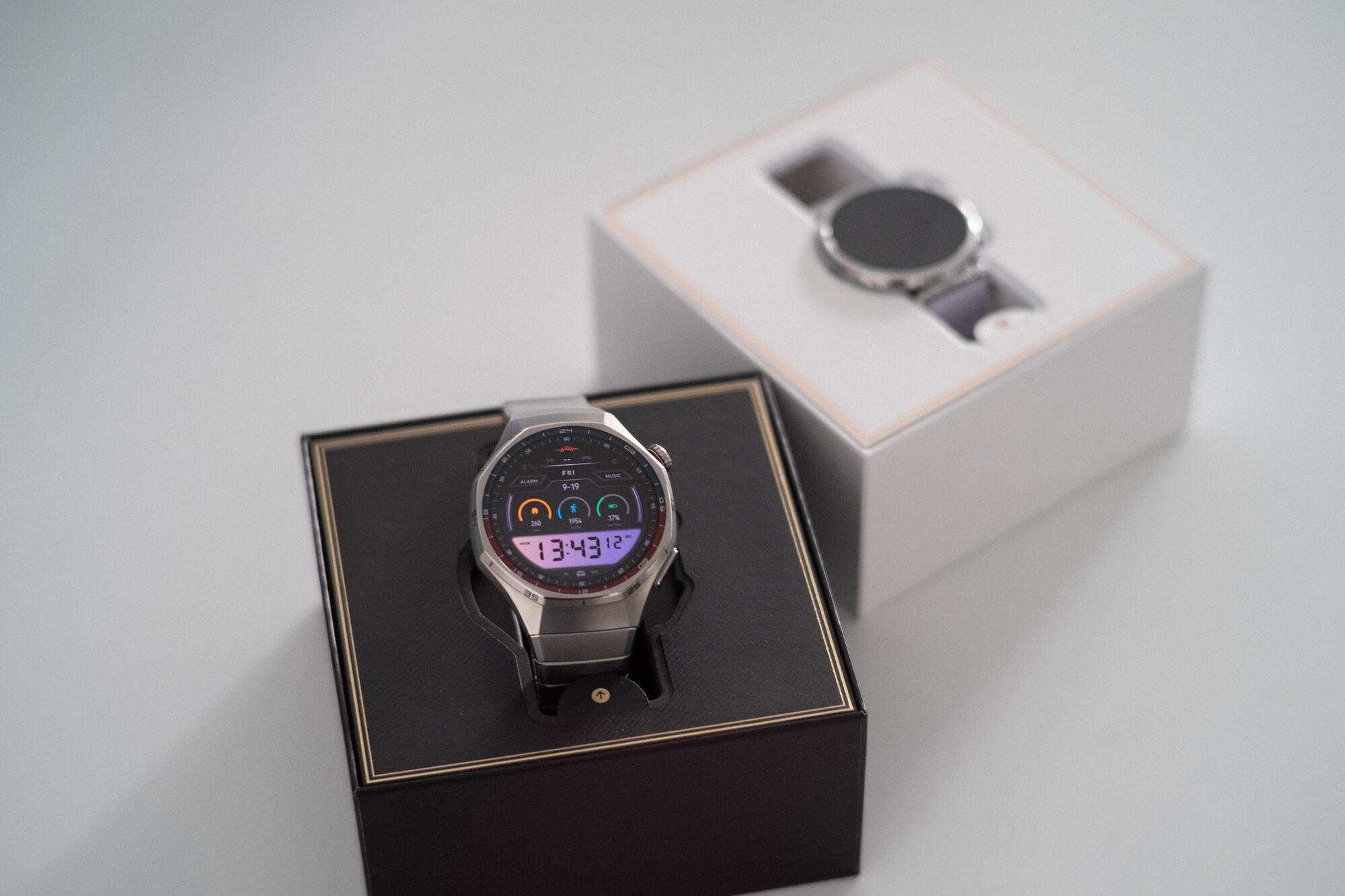 Корпус часов GT6 Pro выполнен из титана с сапфировым стеклом и задней панелью из нанокерамики: это дает сочетание прочности, защиты от повреждений и при этом легкость девайса. Диаметр корпуса составляет 46 мм, дизайн выдержан в строгом стиле: производитель всячески намекает на суровый мужской деловой имидж.
