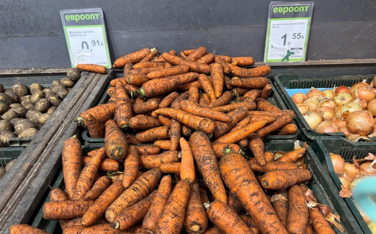 Картофель урожая этого года в гипермаркете стоит 1,29 руб. за 1 кг. Молодую морковь также можно купить по выгодной цене – 91 копейка за кило. Стоимость перца варьируется в зависимости от его цвета: зеленый грунтовой стоит дешевле остальных – менее 3 рублей, красный – 7,79, а желтый – 9,56. Томаты по-прежнему держат ценник выше 5 рублей, при этом они не такие ароматные, как на рынке. Килограмм огурцов обойдется в 4,49.
