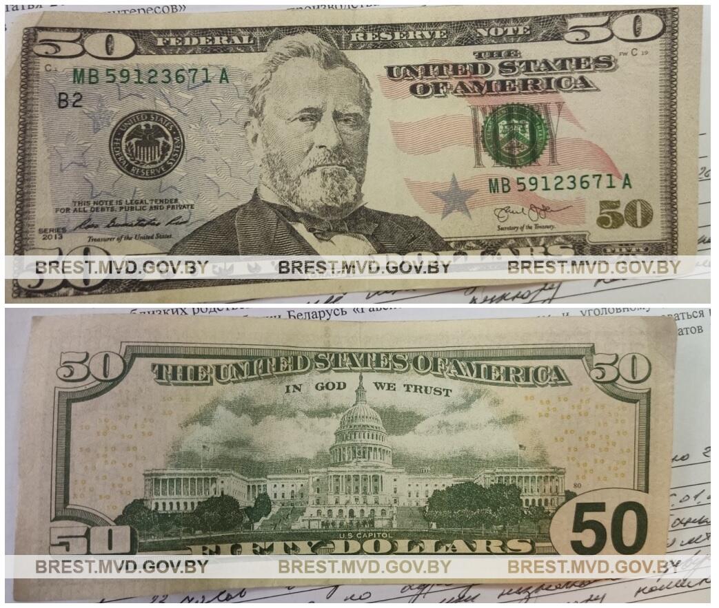 В Барановичский ГОВД поступило сообщение о том, что 30-летняя местная жительница в одном из банков предъявила к обмену купюру 50 долларов США.