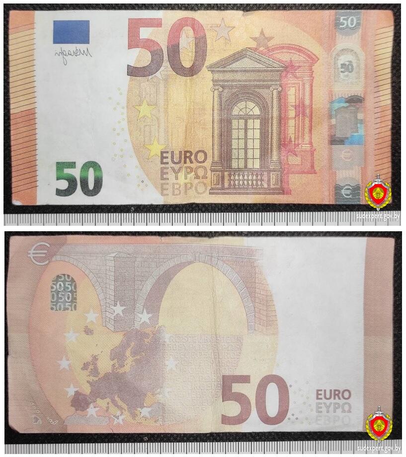 Одна купюра номиналом в 50 евро вызвала у кассира сомнения в подлинности – на ней не было серийного номера и года выпуска.