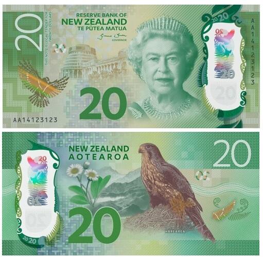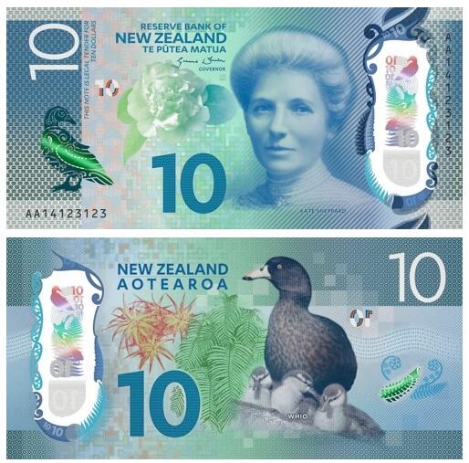 Ярким и красочным является новозеландский доллар. На сегодняшний день существуют наличные купюры номиналом в 5, 10, 20, 50 и 100 долларов.