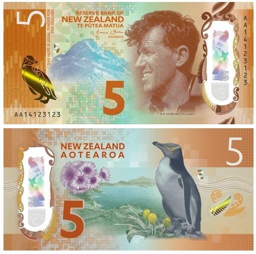 На лицевой стороне банкноты в 5 новозеландских долларов изображен Эдмунд Хиллари – исследватель и альпинист, первым покоривший Эверест.