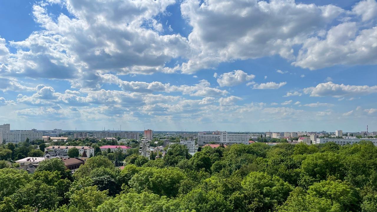 Следующая достопримечательность парка – обзорная башня. Отсюда с высоты 40 метров открывается самый живописный вид на Гомель. Правда, для этого требуется самостоятельно преодолеть 190 ступенек узкой винтовой лестницы. Но вид того стоит.