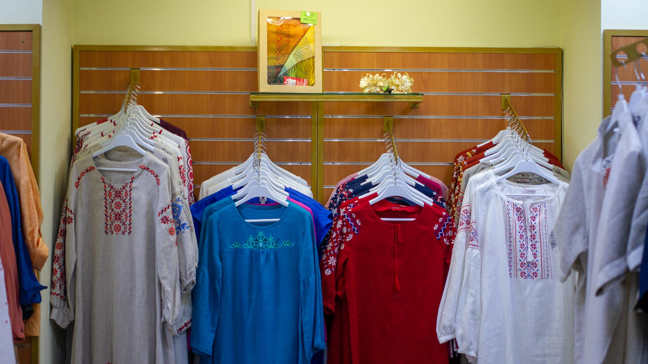 Еще одна популярная позиция у туристов – одежда с вышиванкой. Есть как для взрослых, так и для детей. В основном ассортимент представлен минской фабрикой «Скарбнiца», но есть и другие производители. Стоит учесть, что это одежда не для повседневной носки. Важно и то, что вещи от «Скарбнiцы» – это малосерийный тираж экспериментальных образцов выставочного и подарочного ассортимента, поэтому цена для неподготовленного человека может быть немного неудобной. Например, мужская сорочка с вышиванкой обойдется в 636 рублей. Женская будет стоить дешевле – около 200 рублей. Есть также платья в национальном стиле, которые, как рассказывают сотрудники магазина, покупают на свадьбу невесты. Покупают одежду изо льна просто и потому, что в ней комфортно.
