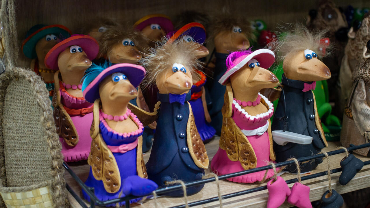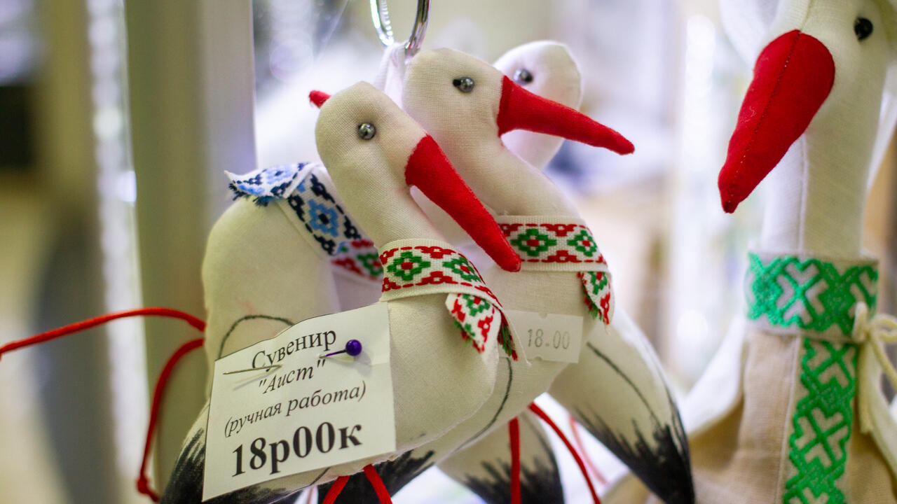 Помимо торговых павильонов с одеждой, продуктами и украшениями, в «Столице» много островков с любопытными сувенирами. На одном из таких можно найти аистов ручной работы. В зависимости от размера ценник на них колеблется от 18 до 68 рублей.
