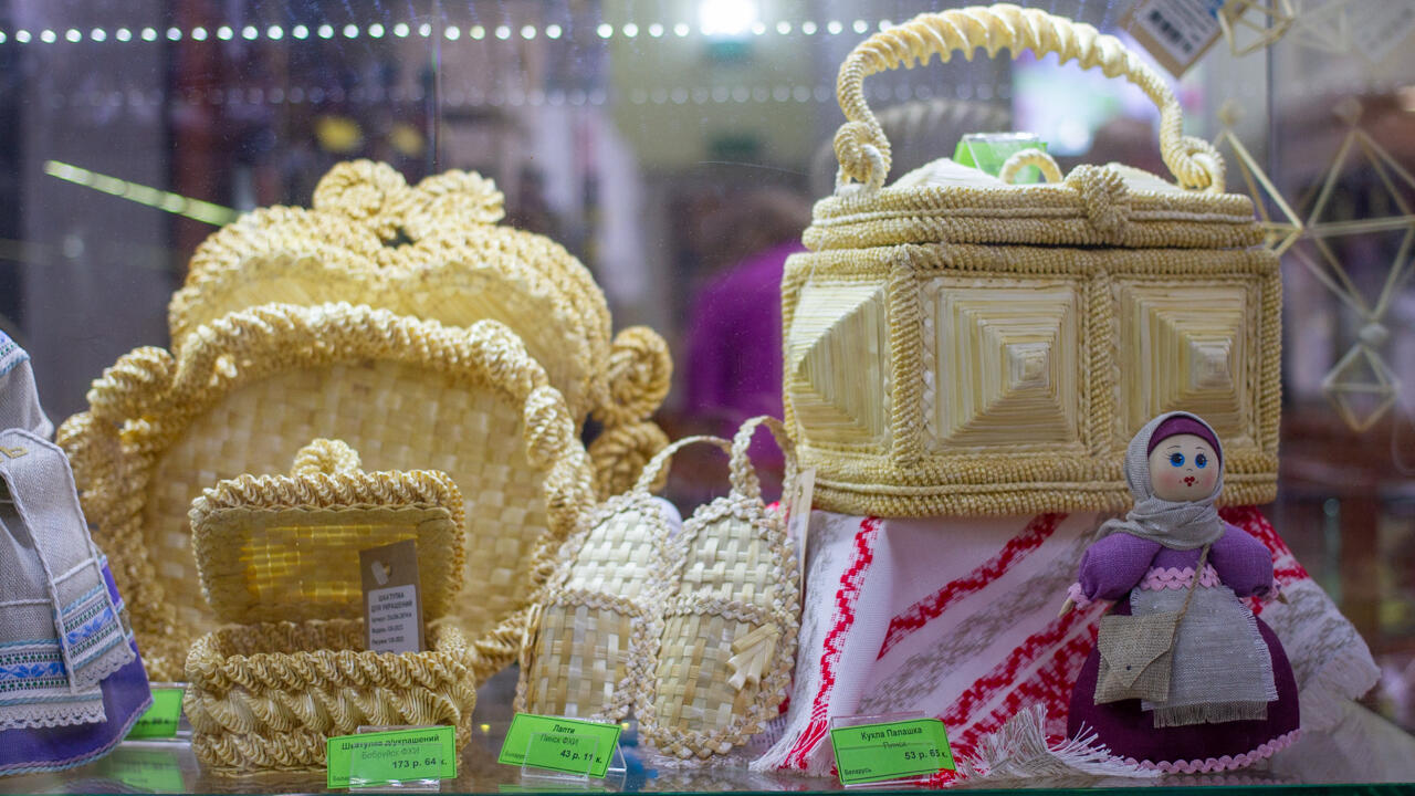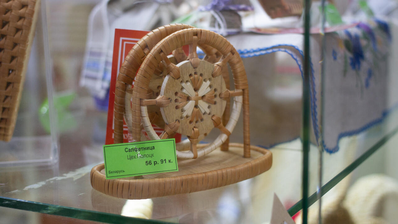 В «Кiрмаше» большой выбор изделий ручной работы из лозовой ленты от «Белхудожпромыслов». К слову, это единственное в Беларуси производство художественных изделий по традициям национального ремесленничества.