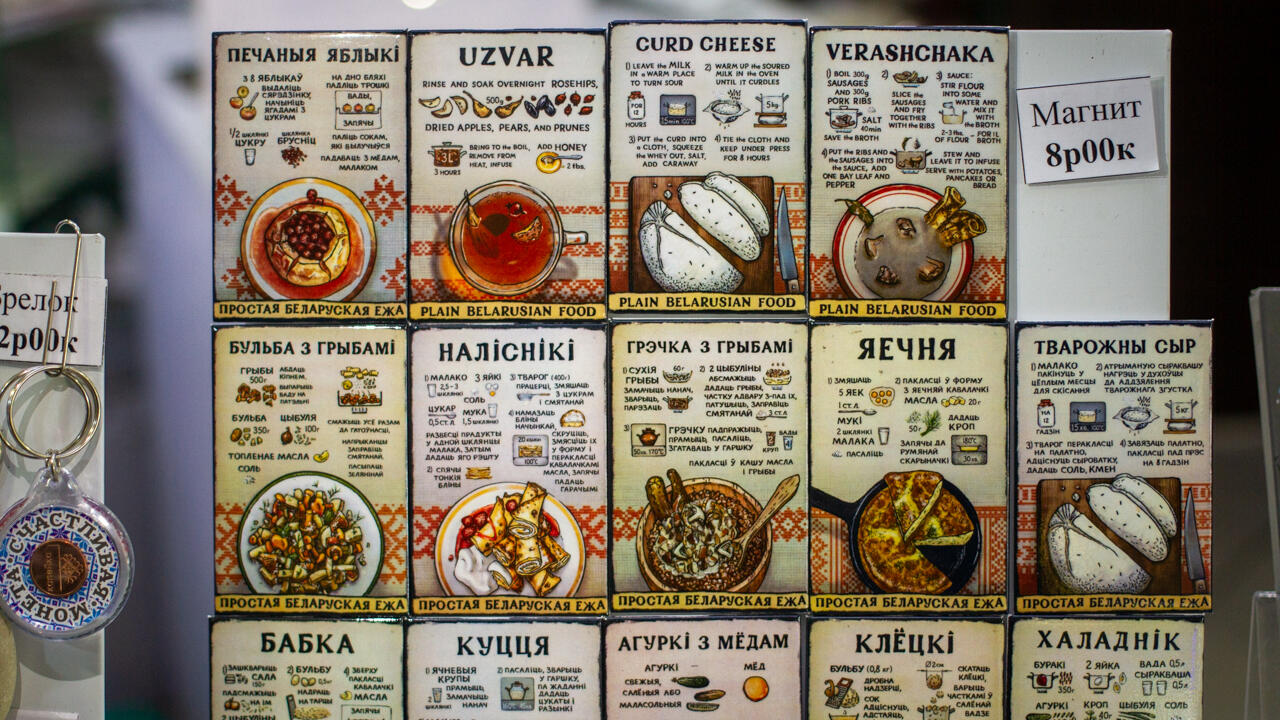 Еще из оригинального – магниты с рецептами блюд белорусской кухни. Цена вопроса – 8 рублей.