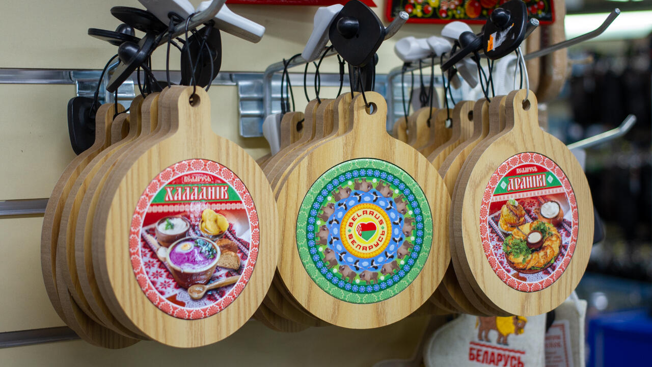 Керамические доски с изображением блюд белорусской кухни и другой национальной символики – универсальный и недорогой сувенир. Цена – 18 рублей.