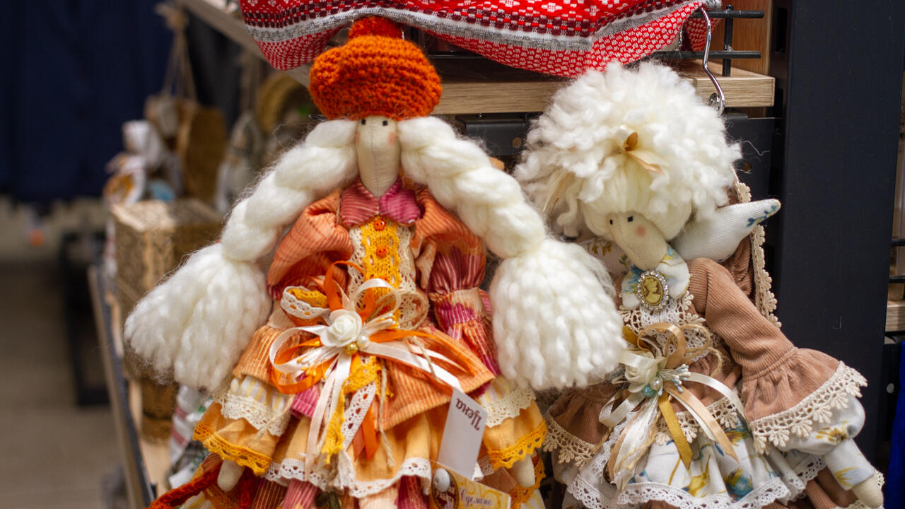 Куклы ручной работы здесь также есть. Из интересного – на бирке указаны фамилия и имя ремесленника. Такая кукла отлично подойдет в качестве сувенира семье, где есть дети. Да и в качестве декора, благодаря пастельным тонам, ее тоже можно использовать. Цена – 216 рублей минимум.