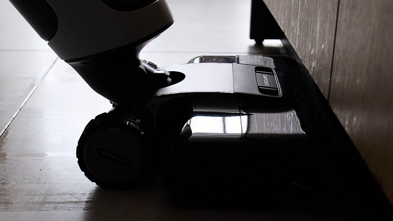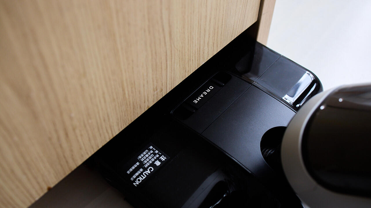 Пришло время опробовать систему GapFree. Пылесос проезжает под цоколем, вплотную прижимается к шкафу и выезжает назад. Мне понадобилось дважды прокатить пылесос вперед и назад, чтобы убедиться – крошек больше нет.