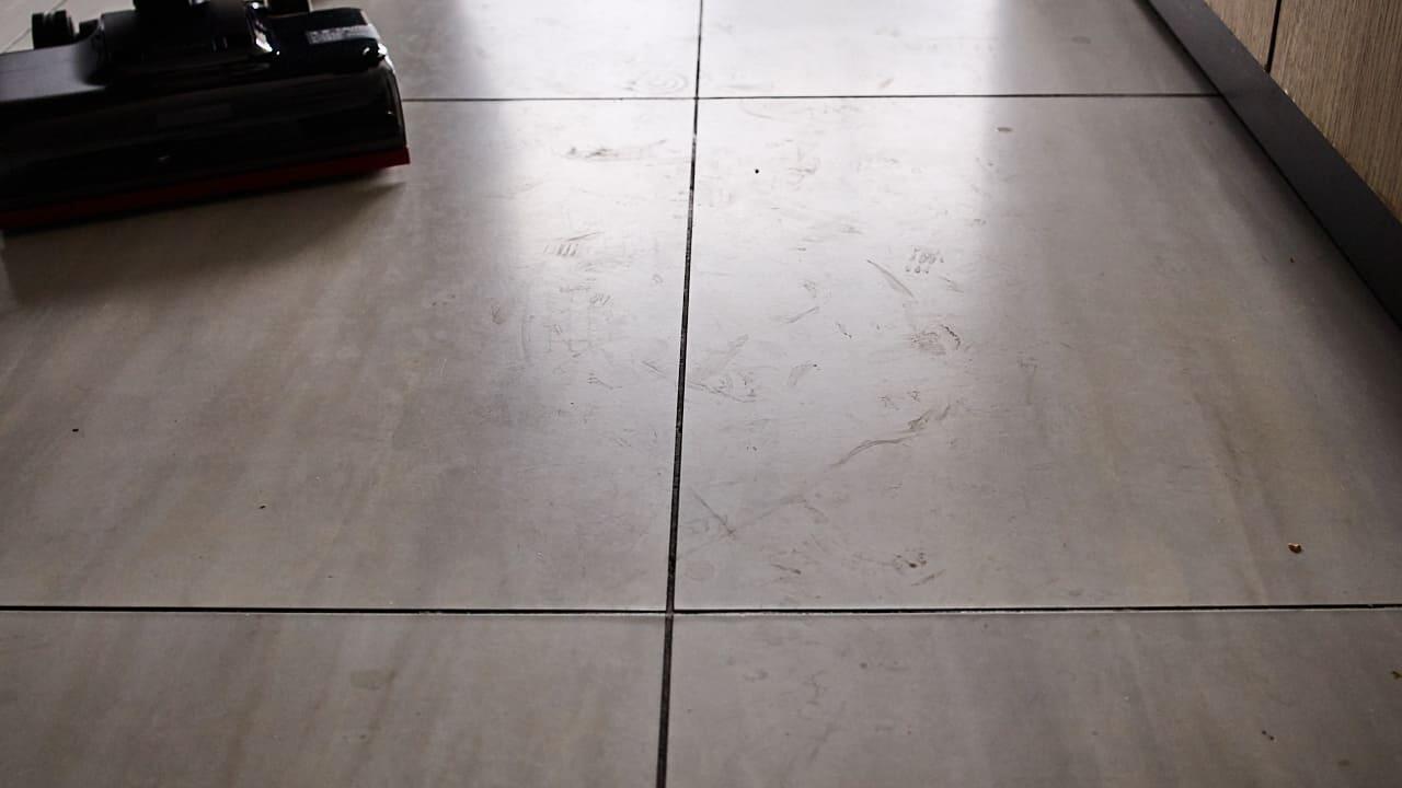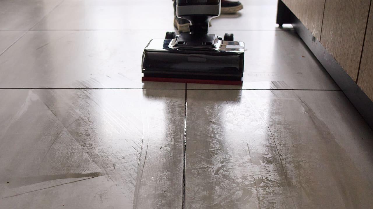 Проверяем на плитке со следами подошв. Пылесосу достаточно проехаться по месту загрязнения два раза, чтобы полностью очистить пол. Понравилось, что когда мы с девайсом отступали назад, пылесос не оставлял мокрый след – скорее, намек на то, что на полу только что провели влажную уборку. Достаточно минуты, чтобы пол окончательно высох. Вот такая красота получается – смотрите фото.Мощность уборки