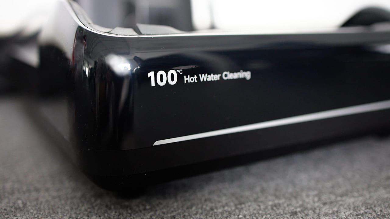 Пылесос умеет бороться с сильными, старыми и даже масляными пятнами на полу. Девайс сам нагревает воду в резервуаре до температуры 85 °C (степень нагрева, кстати, можно отслеживать на дисплее над резервуаром для воды и контролировать в пользовательском режиме через приложение). Для более впечатляющего результата пол можно вымыть с раствором чистящего средства, которое поставляется в комплекте и разработано специально для борьбы с масляными пятнами.