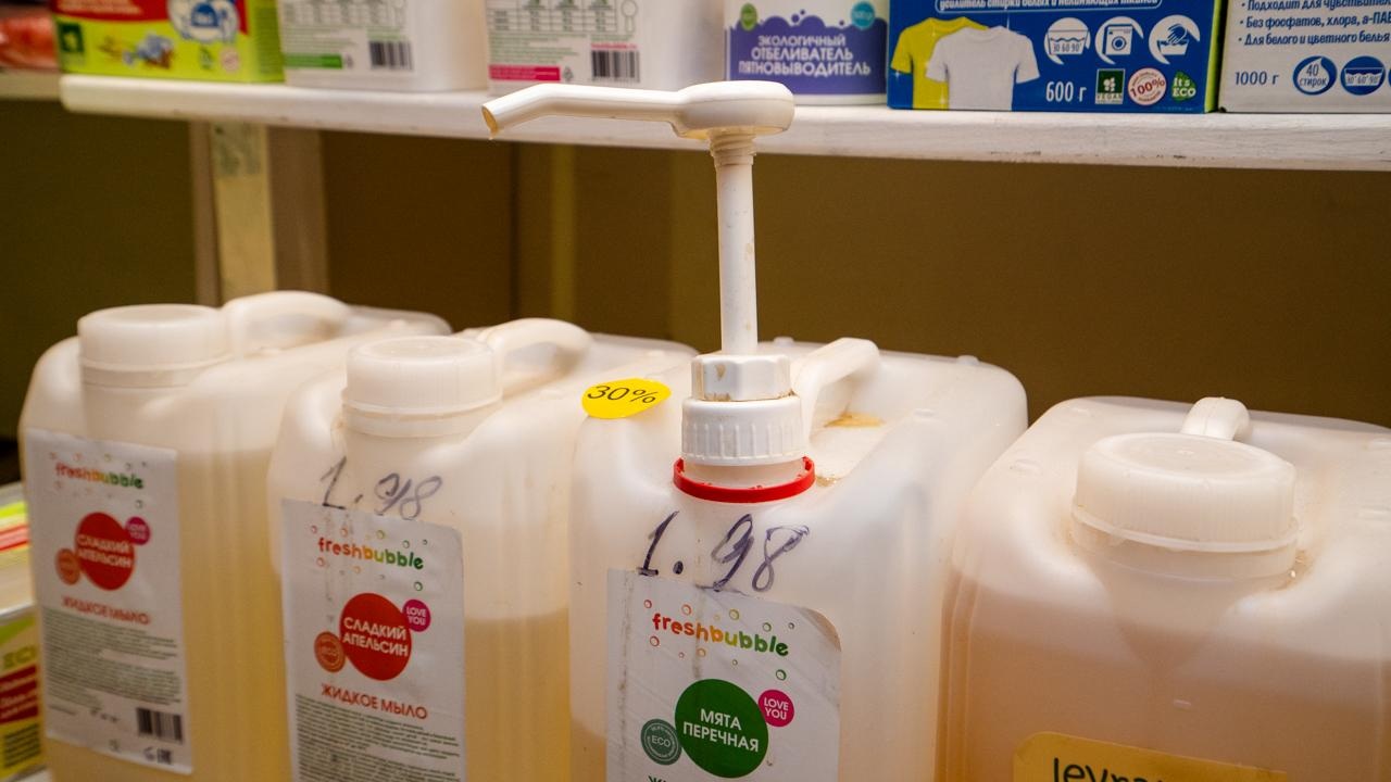 Отдельную радость Ирины вызывает факт, что в магазине можно купить продукцию на розлив: шампунь, гель для стирки, средство для мытья посуды.