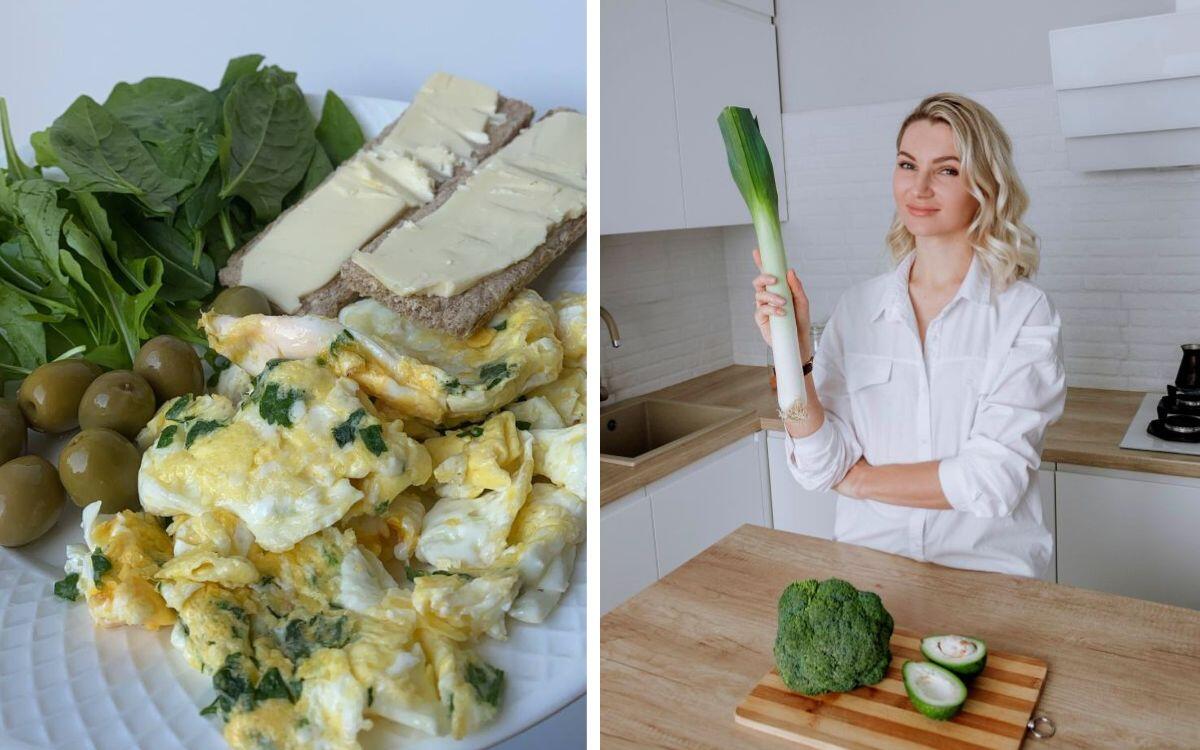 - Завтрак – омлет из 2–3 яиц с зеленью и помидором, половинка авокадо с солью и перцем (9,5 рубля).