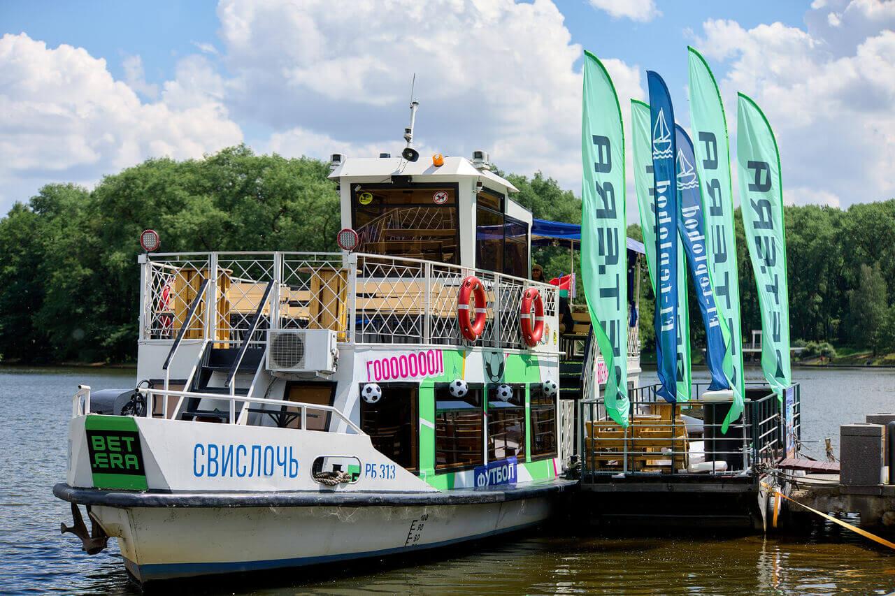 Компания Betera необычно подготовилась к старту большого футбольного события. Первый яркий анонс — этим летом минчане и гости столицы могут прокатиться в акватории реки Свислочь на одноименном брендированном теплоходе. Оформление причала и бортов корабля позволят окунуться в атмосферу предстоящего большого футбольного праздника – Евро-2024.