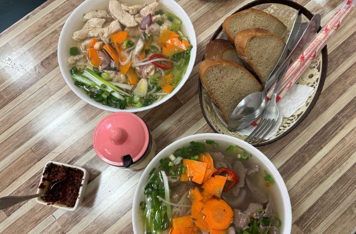 Вьетнамская кухня и лучший суп фо бо. Заведение находится на Комаровском рынке. Интерьер без особых изысков и скромный антураж не пугают настоящих ценителей азиатской кухни. Посетители возвращаются снова за обилием зелени, сладкими соусами и быстрой подачей. В кафе самая демократичная цена на фо бо – 14 рублей. И это при внушительном объеме порции – 700-800 мл. Хлеб и соусы входят в стоимость. Одну порцию супа легко получится разделить на двоих, уменьшив тем самым итоговый чек.
