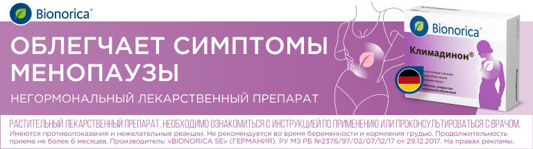 Негормональный растительный препарат «Климадинон» для облегчения симптомов менопаузы, таких как приливы и повышенная потливость.