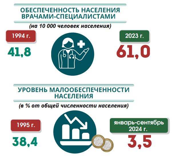 Белстат опубликовал инфографику «Качественный рост уровня жизни населения Республики Беларусь, 1994–2024 гг.».