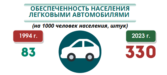В среднем в 2023 году на 1000 жителей в Беларуси приходилось 330 легковушек. В 1994 году показатель был значительно меньше – 83 машины.