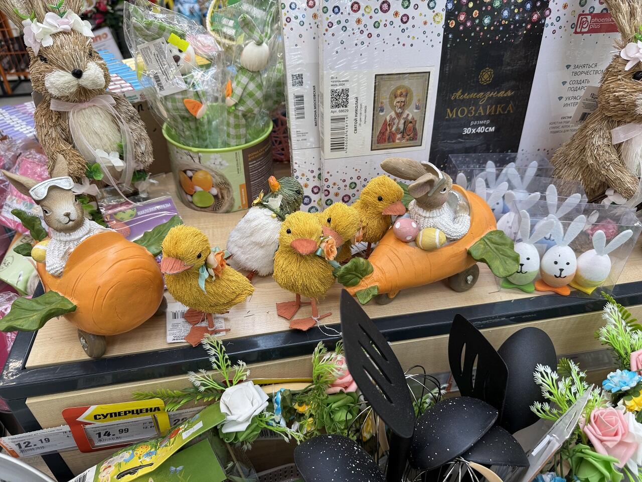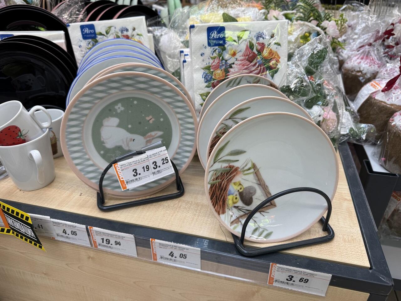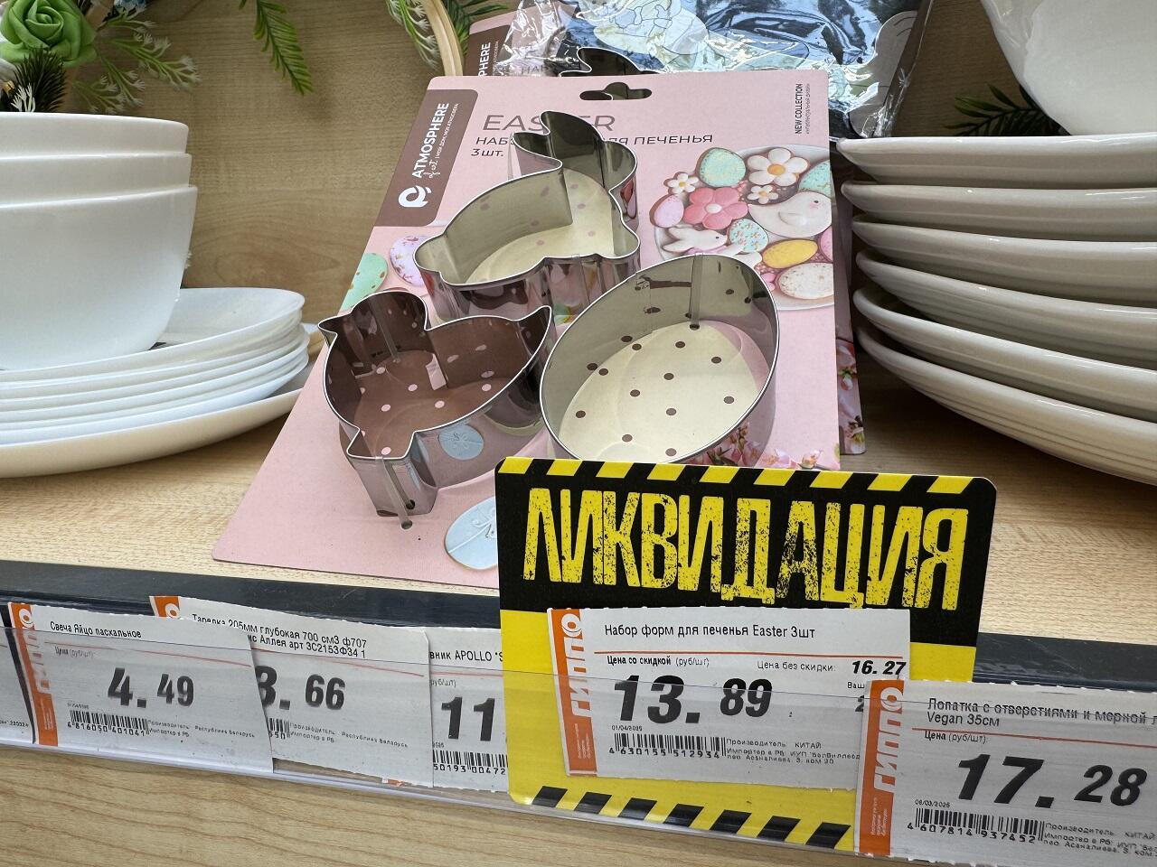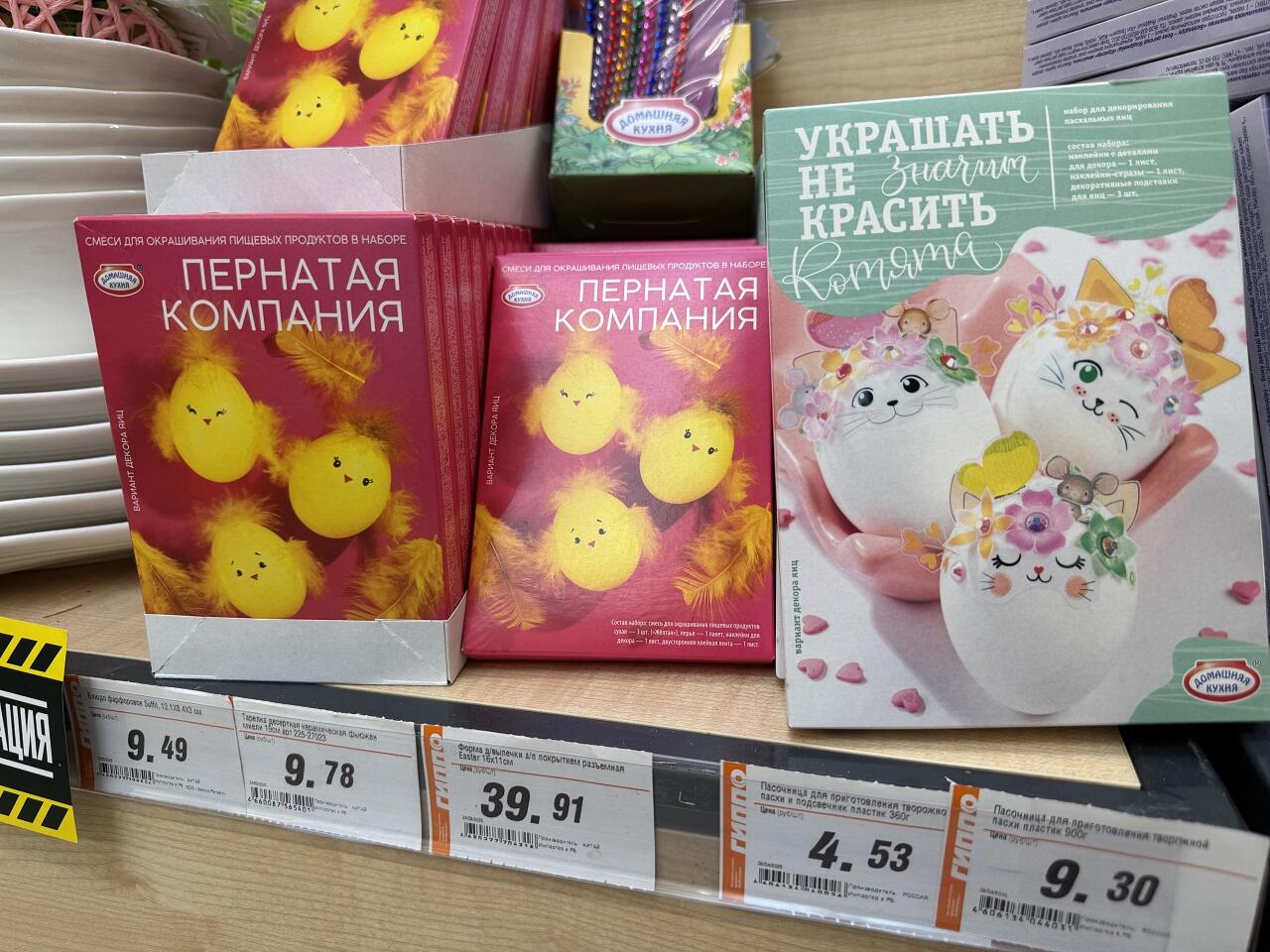 Украшать эти самые яйца в нынешнем сезоне предлагают перьями и кошачьими мородочками. Чем ближе к празднику, тем больше на тематических горках скидочных позиций. Словить по отличной цене можно хорошие формы для выпечки куличей или печенья. И пусть в этом году сдобу вы купите, но кто мешает запастить инвентарем на будущую весну?