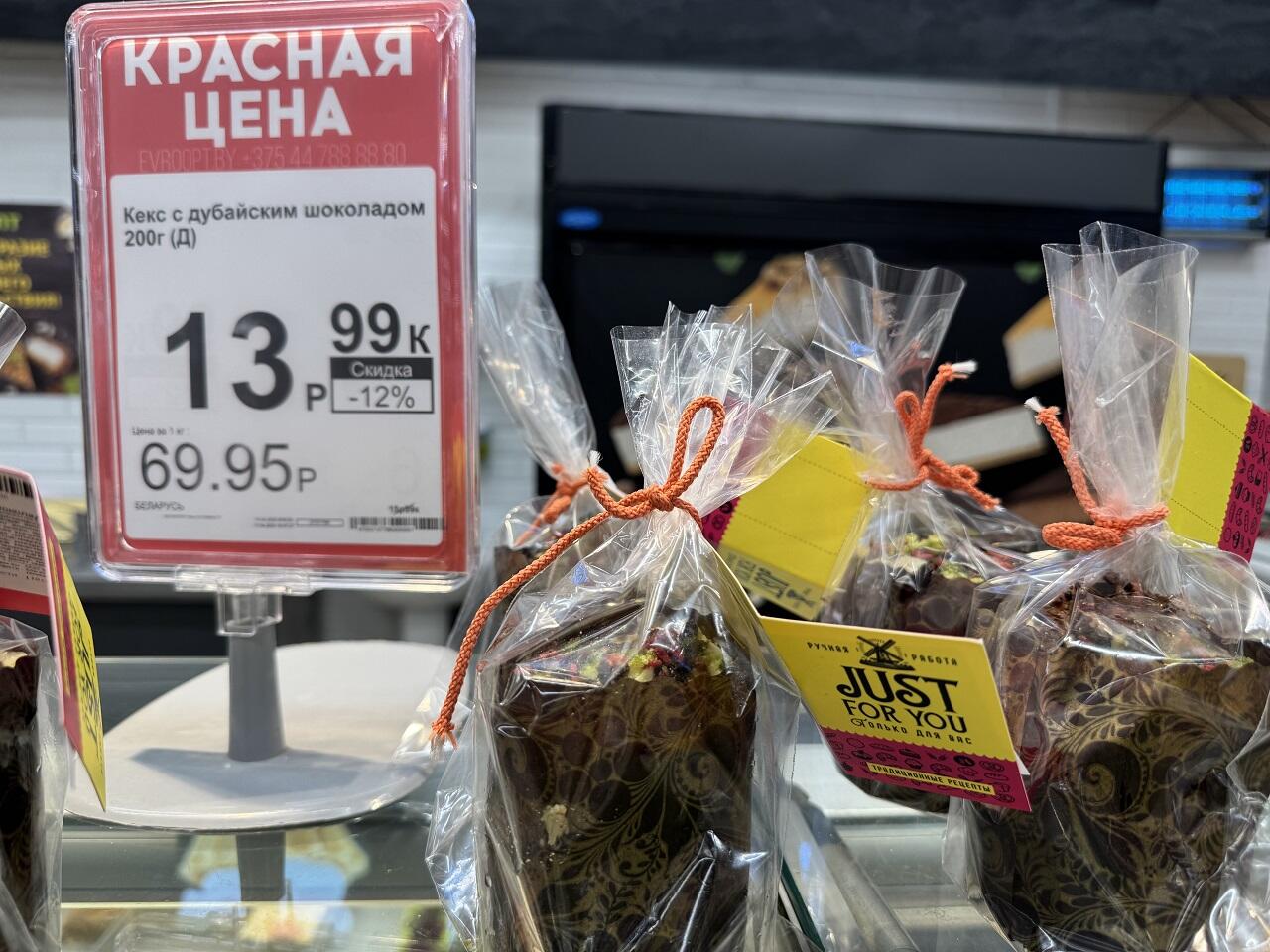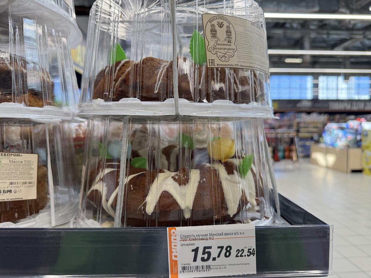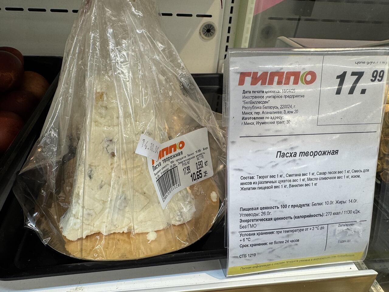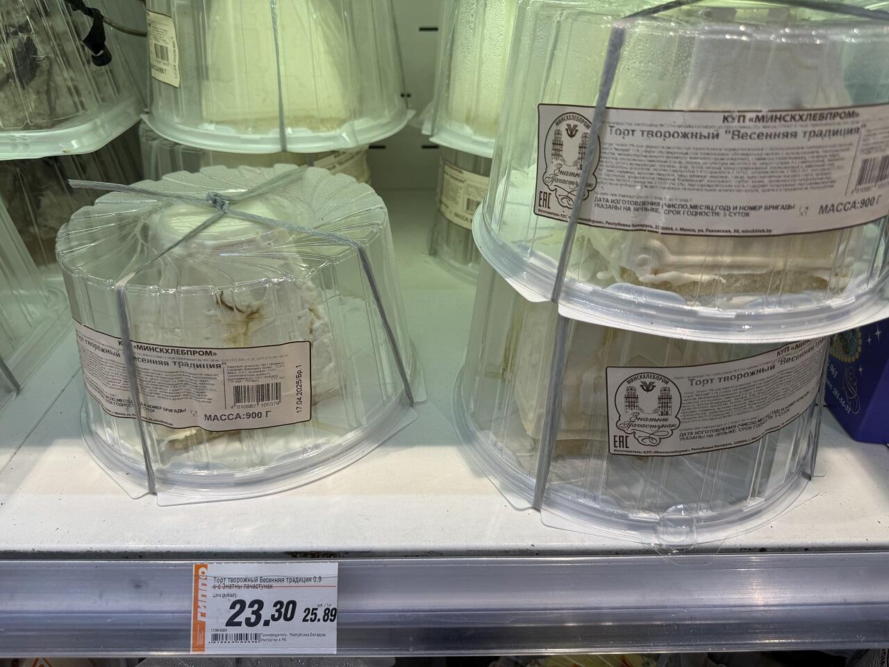 Чуть поодаль партия творожных тортов 900 гр – 23,30. Отыскать можно и творожную Пасху за 1 кг – 17,99.