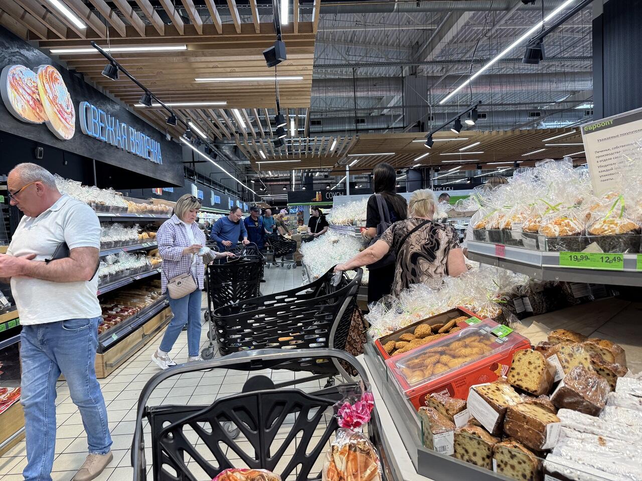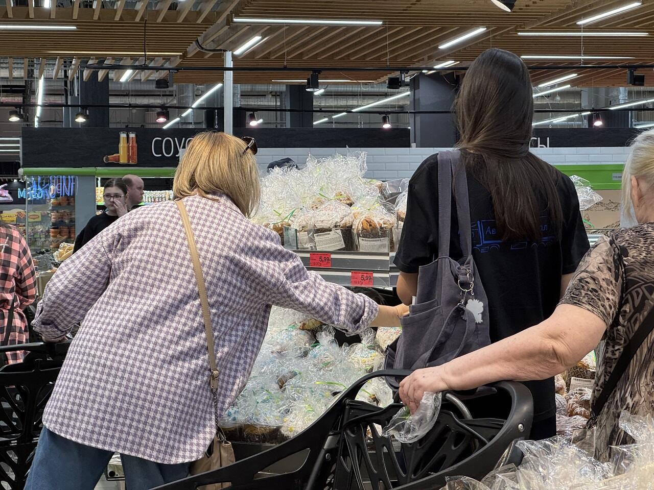 В крупных гипермаркетах столицы накануне Пасхи многолюдно. Закупиться перед особенными выходными решили многие. К тому же, этой весной отмечать праздник Пасхи православные и католики будут в один день 20 апреля. Последний раз такое случалось в 2017 году.