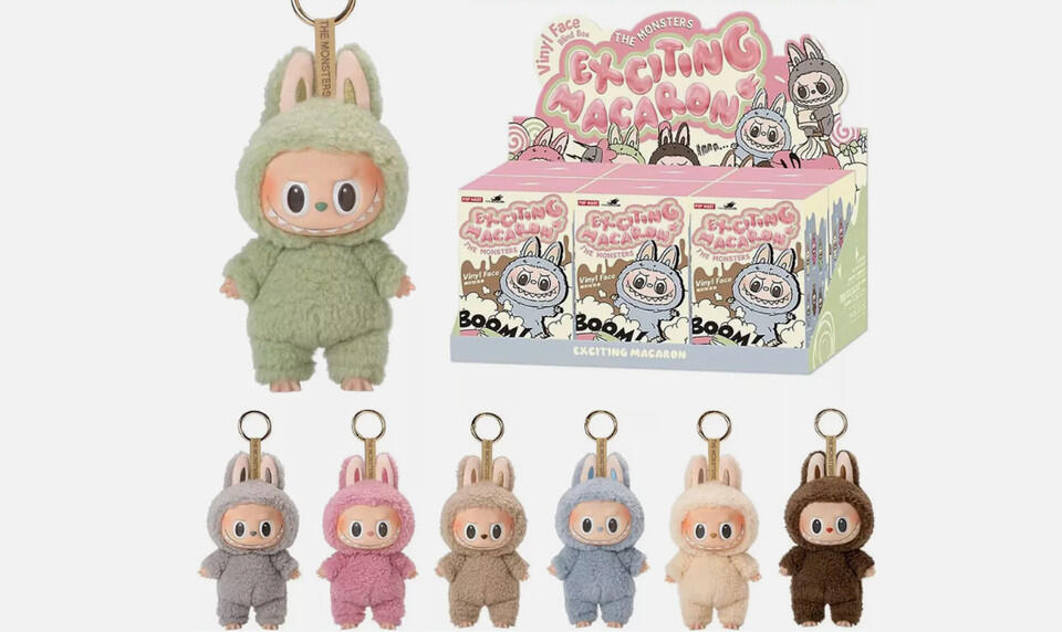 Pop Mart запускает принципиально новую линейку – плюшевые брелоки Exciting Macaron размером 8×17×7 см с подвижными элементами.