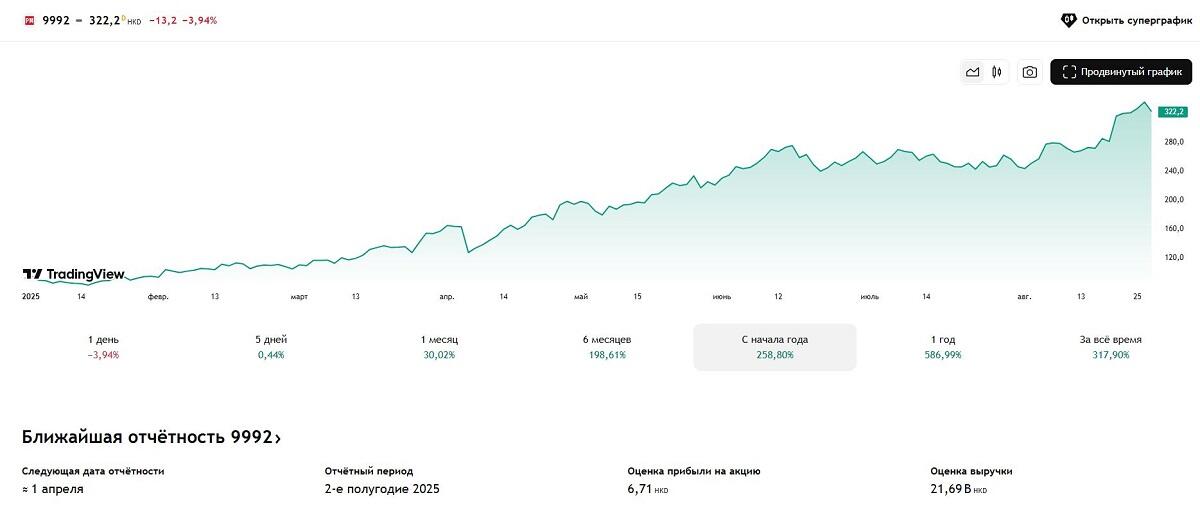 График акций Pop Mart с начала 2025 года вы можете увидеть чуть ниже.