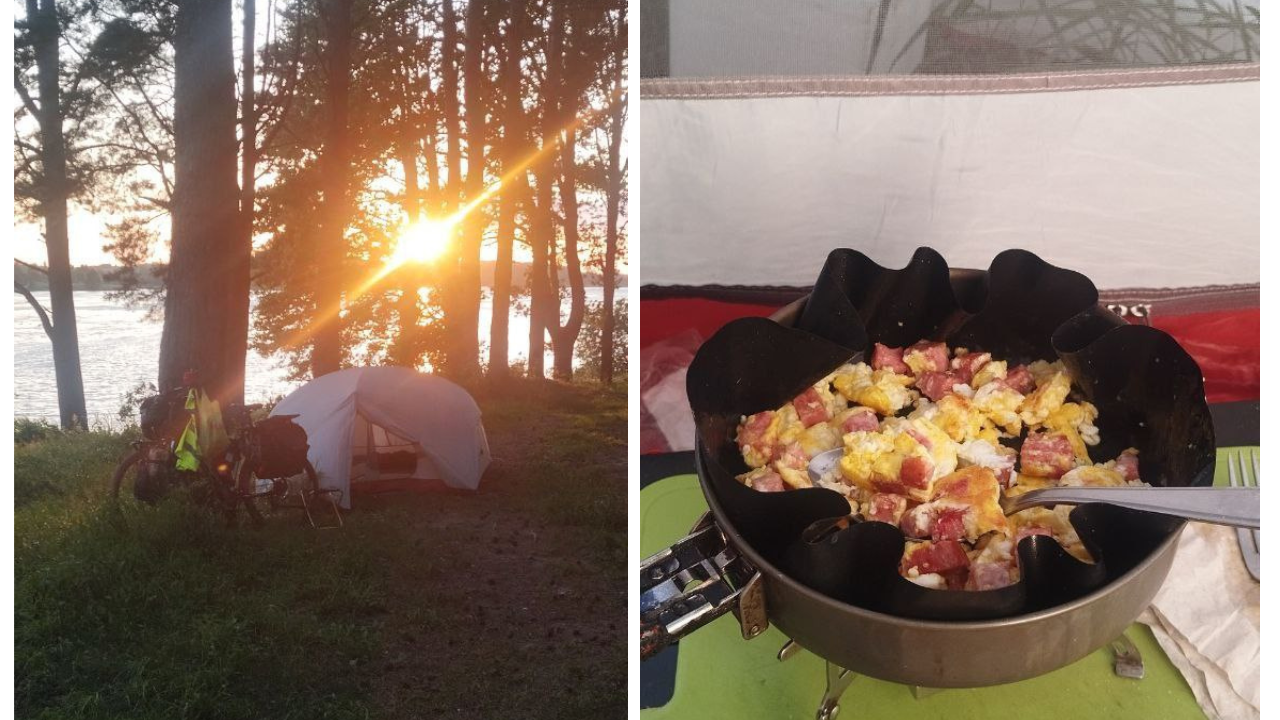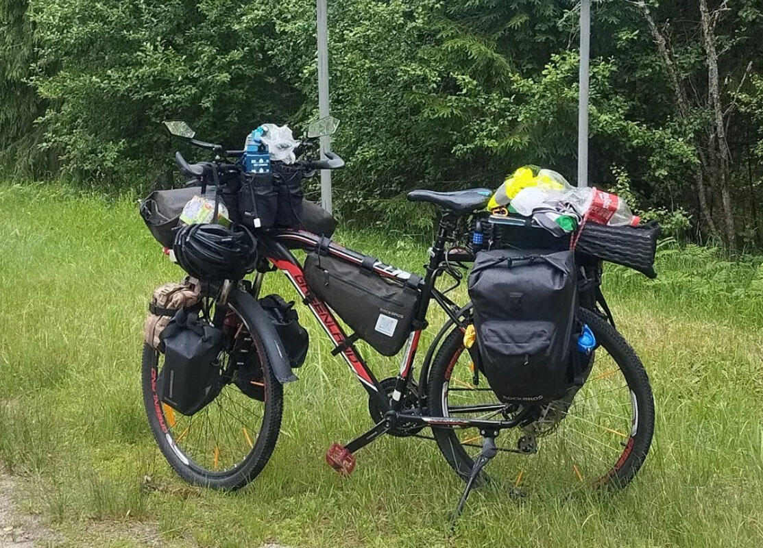 Путешествует Константин на велосипеде Greenland, который приобрел в прошлом году за 1100 BYN. С собой – налобный фонарь, купленная на «Алиэкспресс» за $120 палатка, спальник и флисовый вкладыш для спальника. Обязательно аптечка и полевая кухня: чайник, кастрюля, сковорода и газовая горелка, а к ней самые дешевые баллоны из «Светофора» за 3,29 BYN.