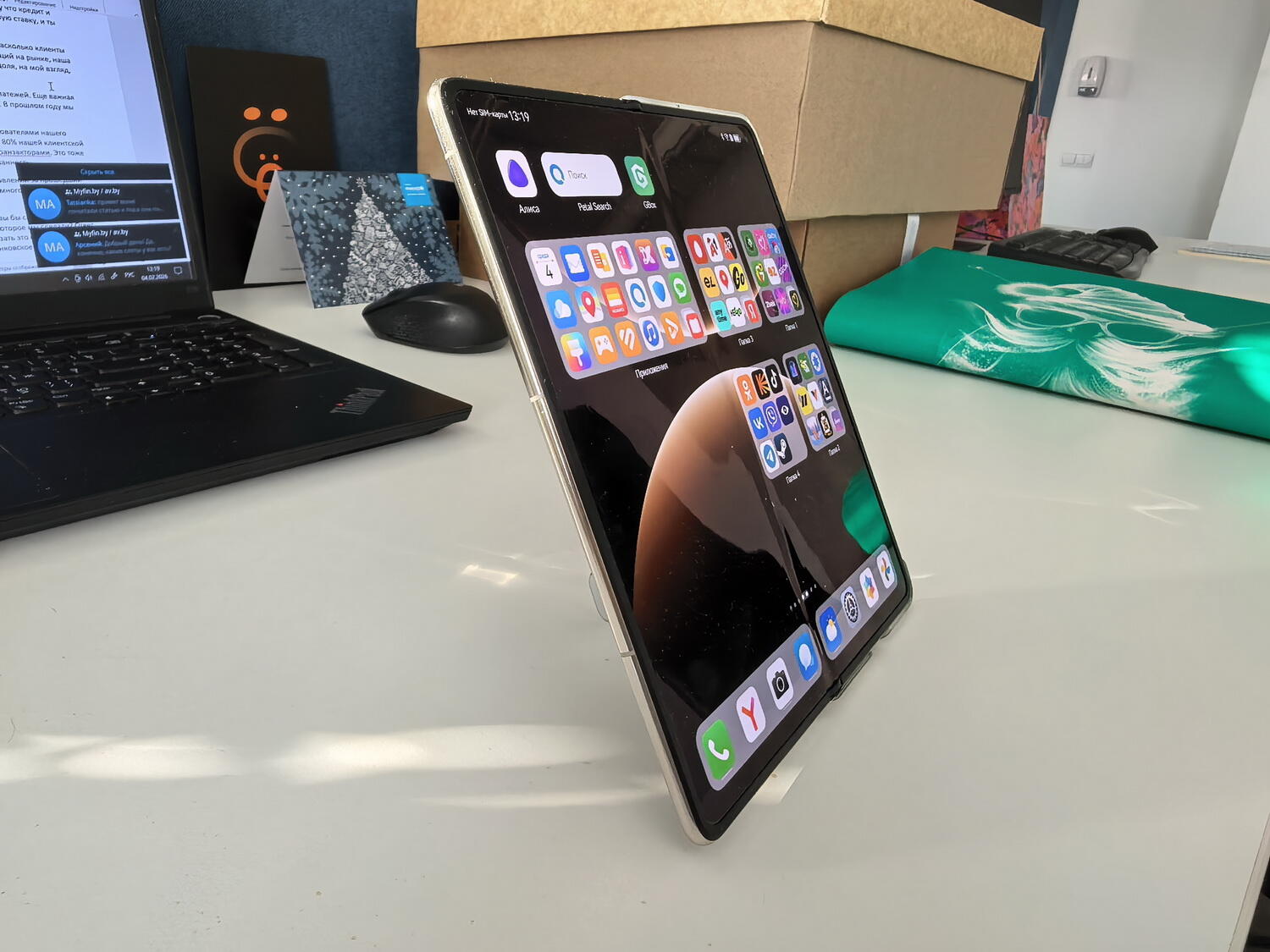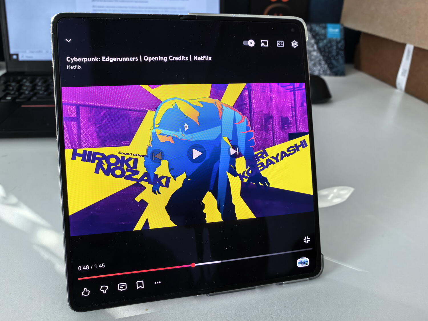 При просмотре видео, например в ютубе, большой экран обеспечивает эффект планшета. Кадр заполняет площадь, черные полосы минимальны благодаря соотношению сторон. Для рисования и заметок доступна фиксация в полураскрытом состоянии: интерфейс нативных приложений (например, «Заметки») адаптируется, разделяя область управления и область отображения. В полностью разложенном виде устройство толщиной 4,5 мм удобно удерживать двумя руками как планшет. Чехол для смартфона имеет удобную ножку-подставку для просмотра видео как в вертикальном сложенном формате, так и в разложенном планшете.