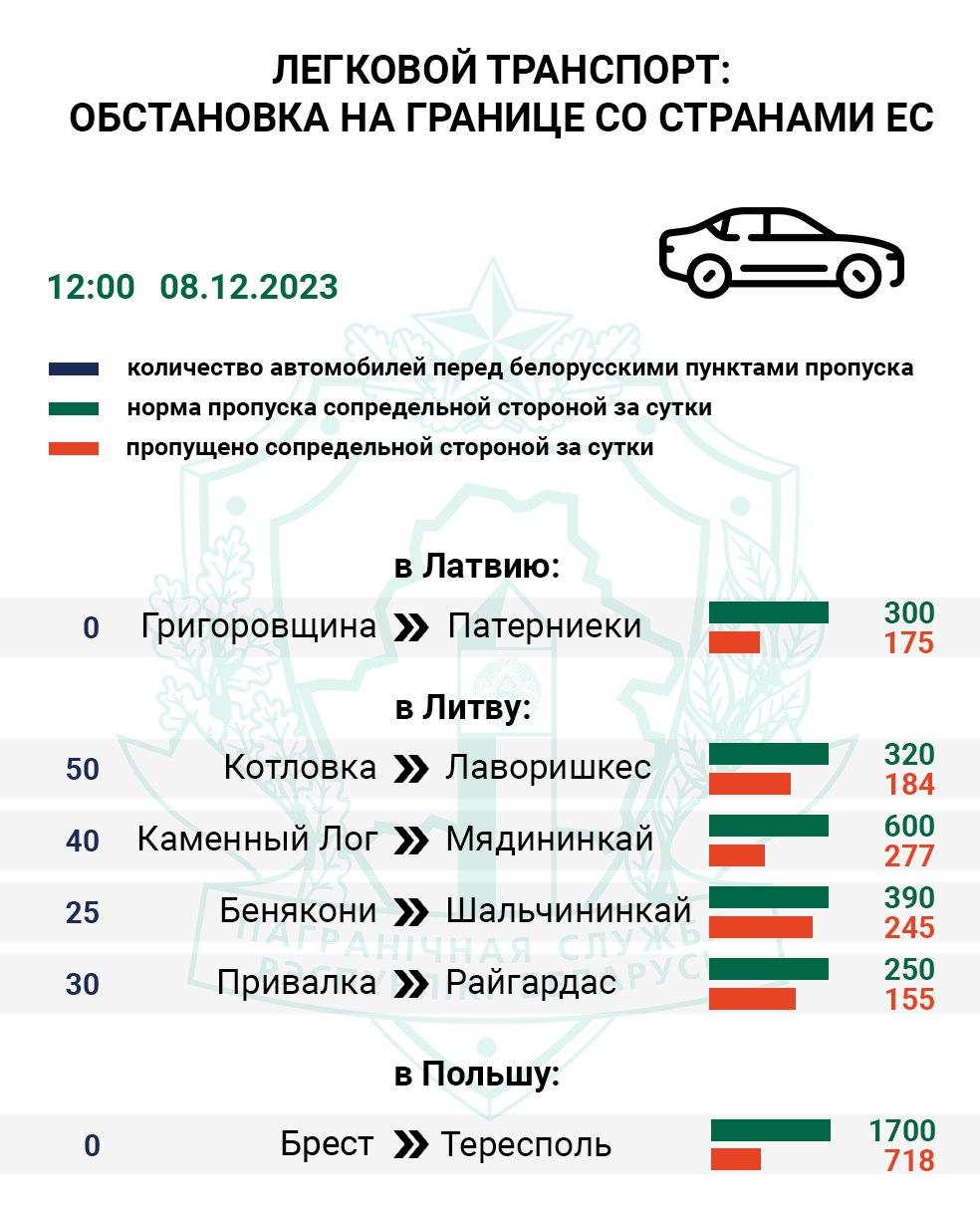По данным ГПК Беларуси на 12:00, очереди фур на белорусско–литовском направлении составляли: