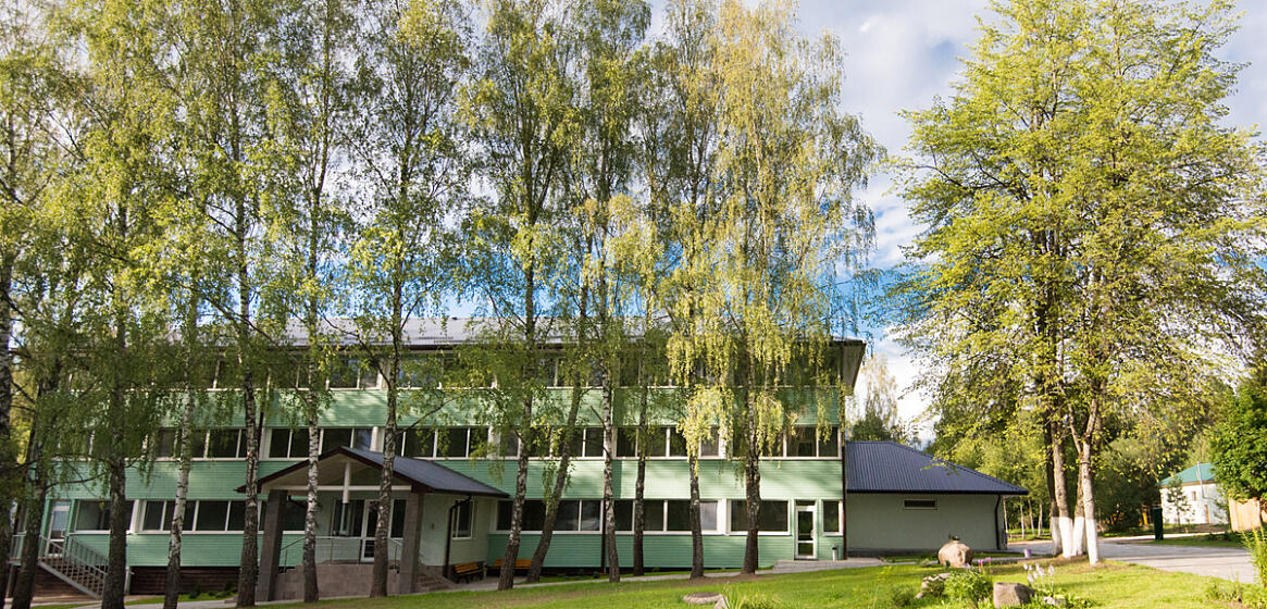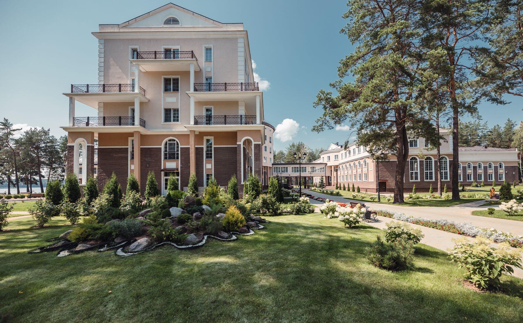 На очереди у нас еще один санаторий. Находится он на берегу озера Плисса в окружении лесного массива. Свежий воздух и живописные виды будут доступны здесь каждому гостю.
