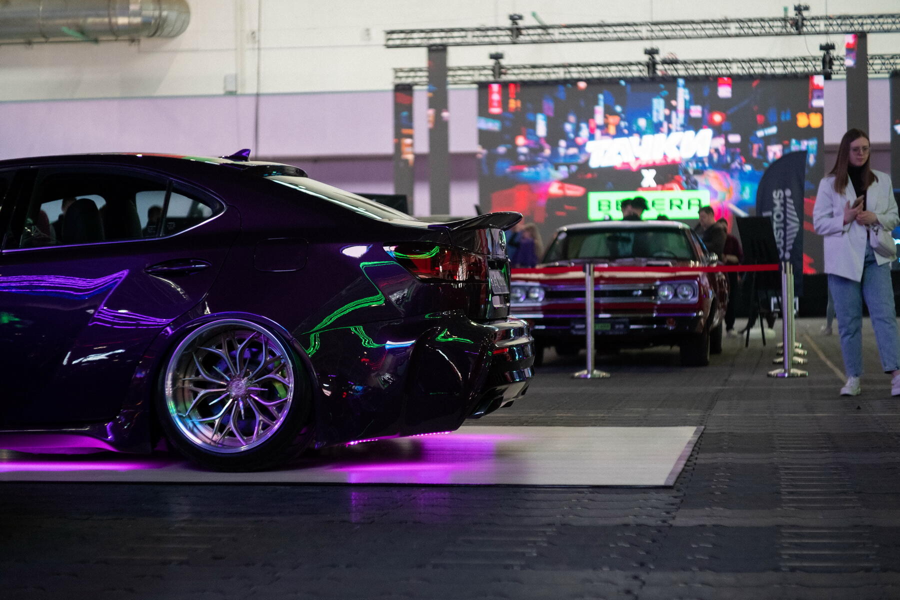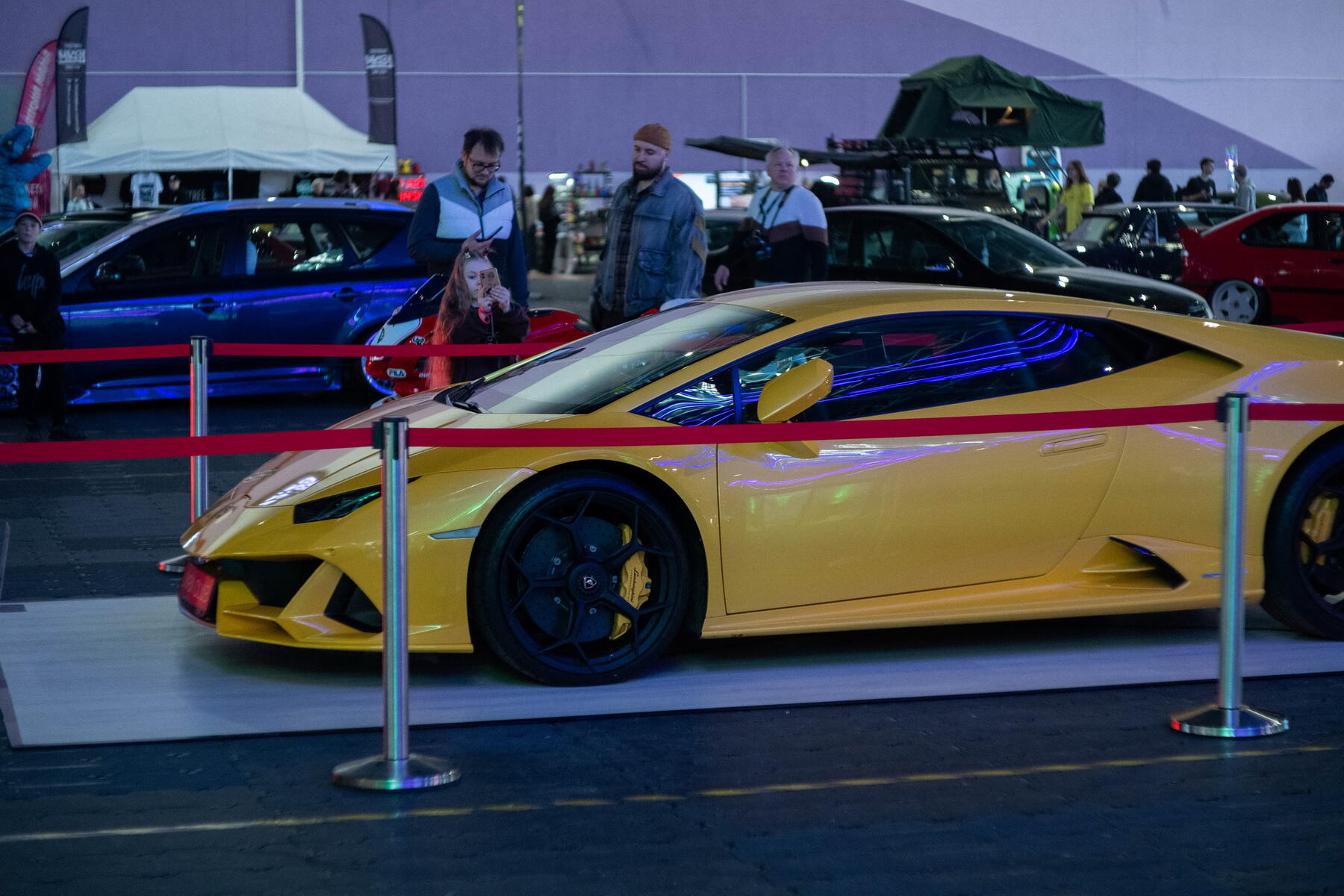 На выставке также показывали Porsche 911 разных годов, Dodge Coronet, Dodge Challenger, Lamborghini Huracan EVO, Mazda RX-7 Veilside, Ford Mustang и другие эффектные модели.