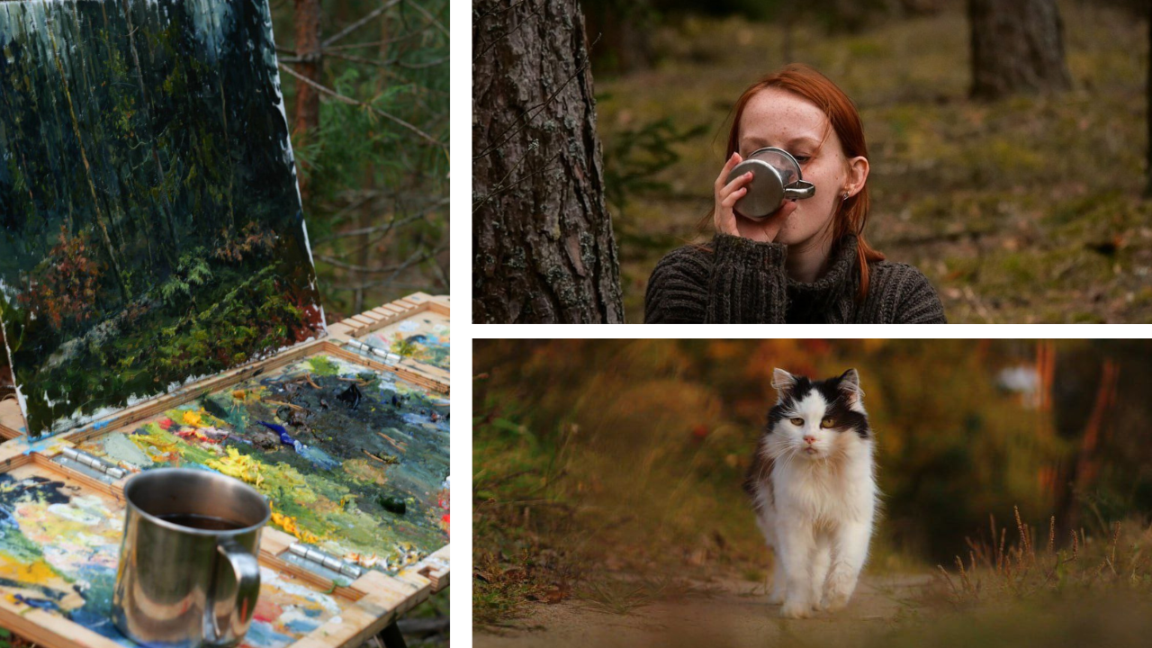 Но пока основной заработок – это работа художником на «удаленке» днем, а живопись и блог занимают остальное время: утром в лесу пишу этюд, потом работаю за компом и графическим планшетом, вечером опять рисую, если еще светло, а по ночам часто монтирую видео с лесом. Бывает, из-за всего этого сбивается режим сна, да и редко с людьми вижусь, но мне нравится моя жизнь сейчас.